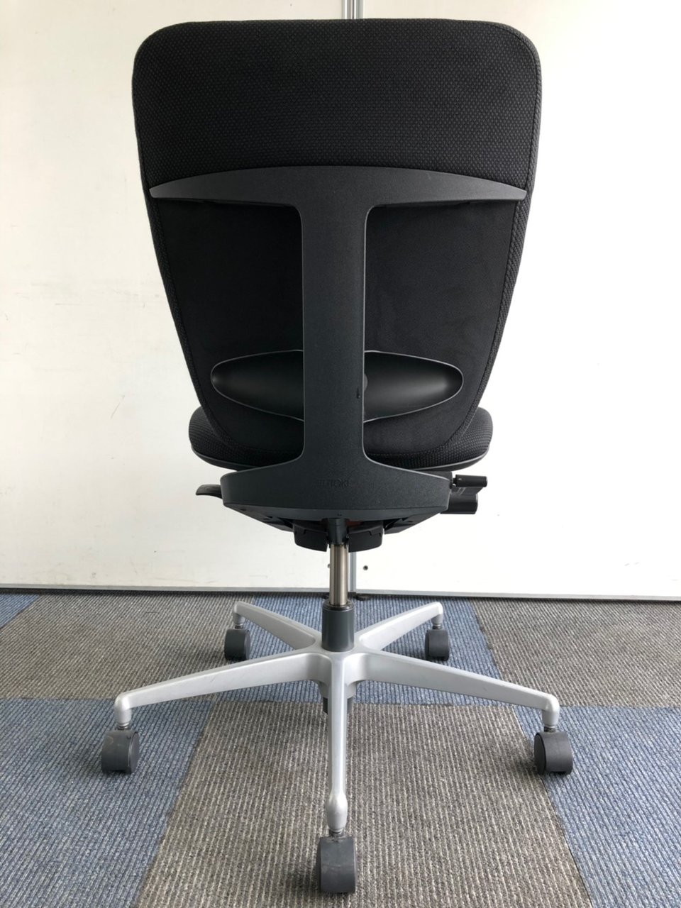例えば、座面は、イトーキ独自の"ベンディングシート"という機構により、クッション、インターシェル、空洞という三層構造になっています。 この真ん中に挟まっているインナーシェルが、着座時の姿勢に合わせて体重を分散してくれるので、どんな姿勢でも体になじみ、疲労を軽減してくれます。 さらに、座面は前後に4センチほど奥行きを調整でき、前傾姿勢で座りたい、深く腰掛けたい、膝裏を圧迫されたくないなど、個人の好みに合った快適さにカスタマイズが可能となっています。