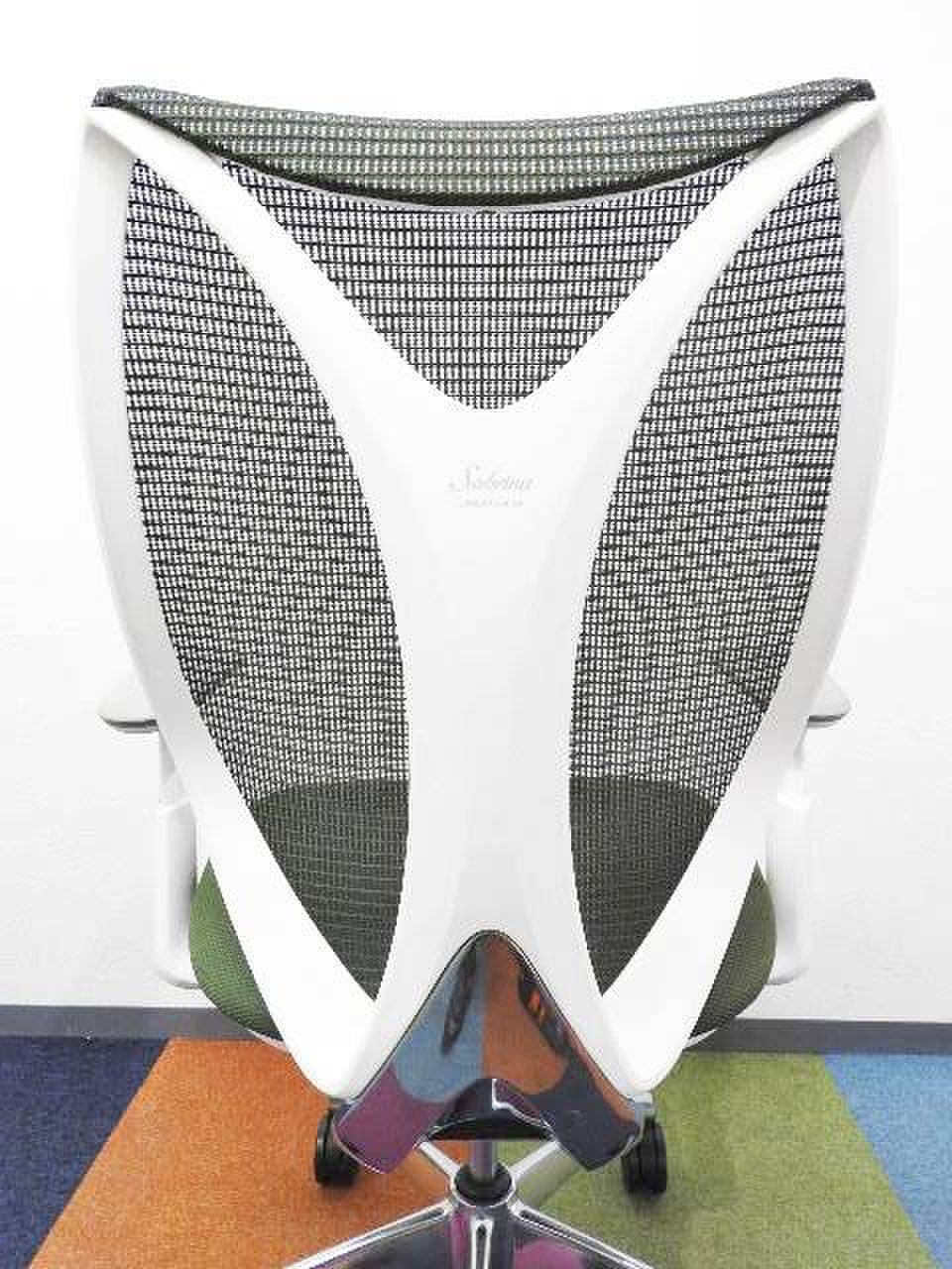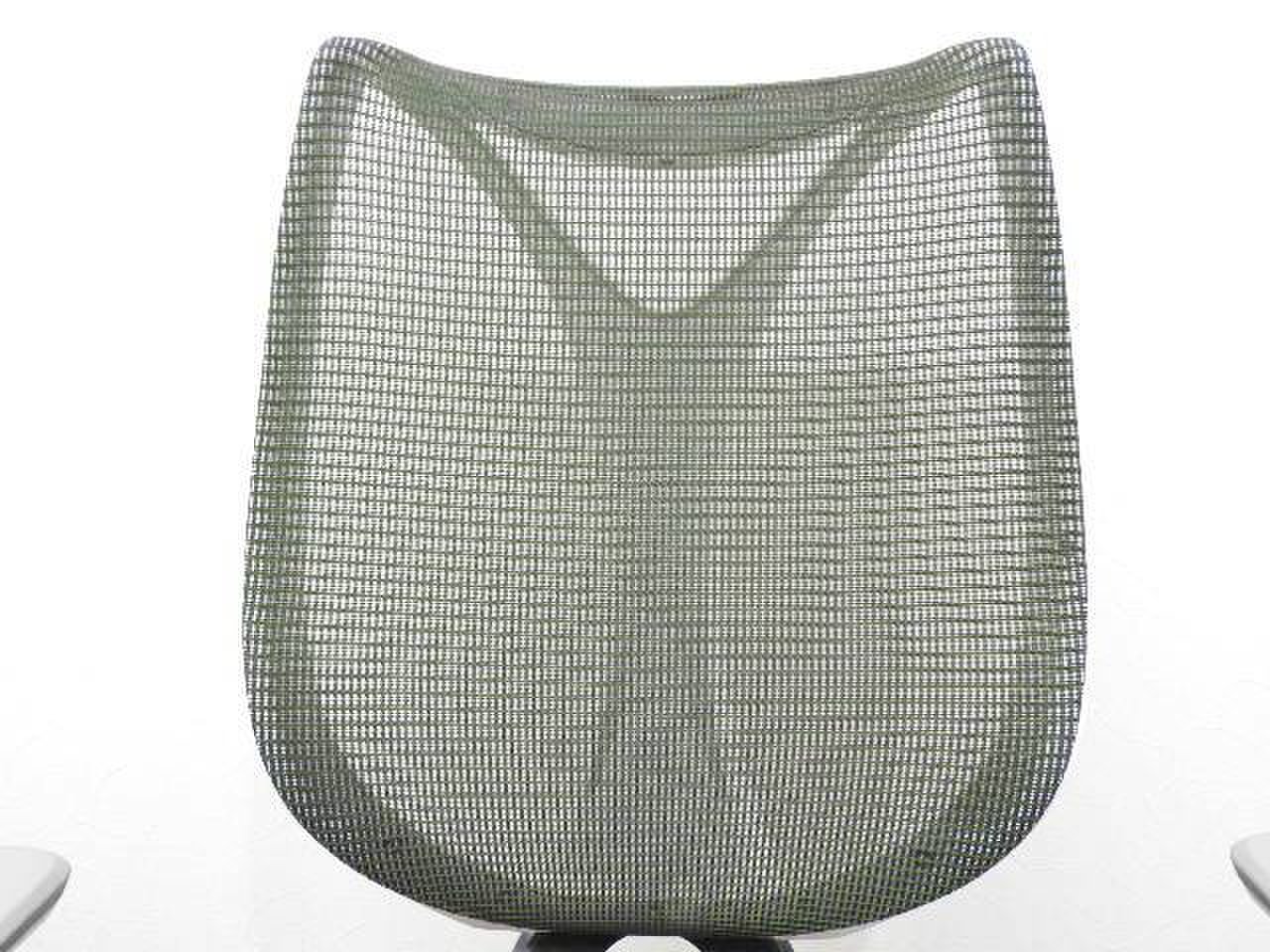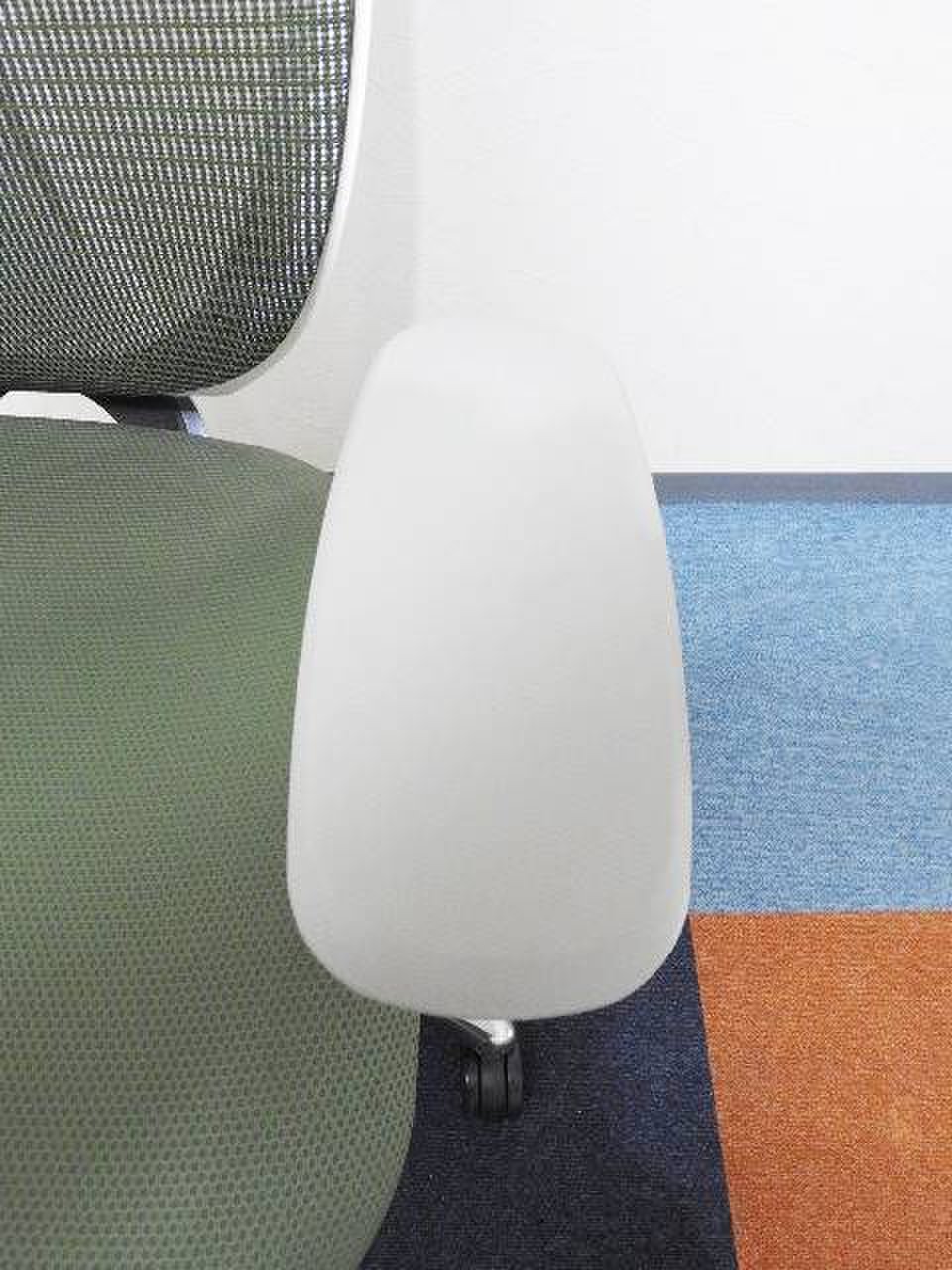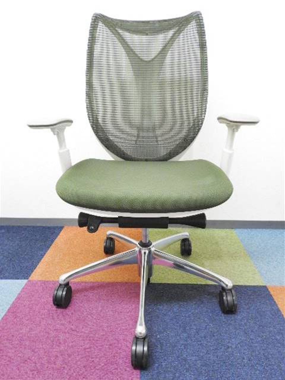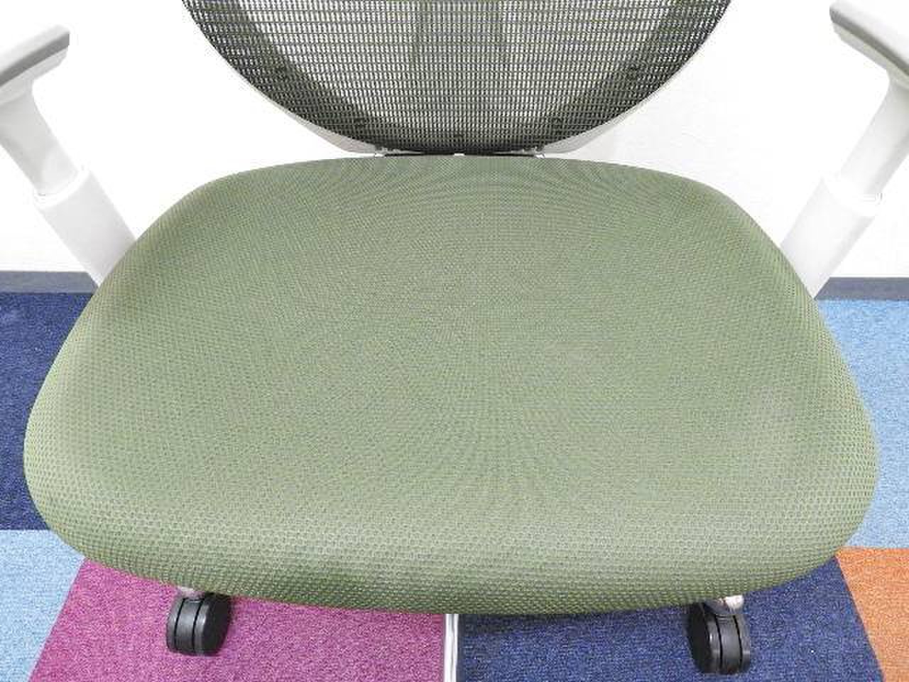 【美しい曲線&透明感のあるメッシュ】■オカムラ製 サブリナチェア ダークグリーン アジャストアーム付 ホワイトボディ ハンガー付【※外部倉庫在庫品(店頭在庫無)】【BR】