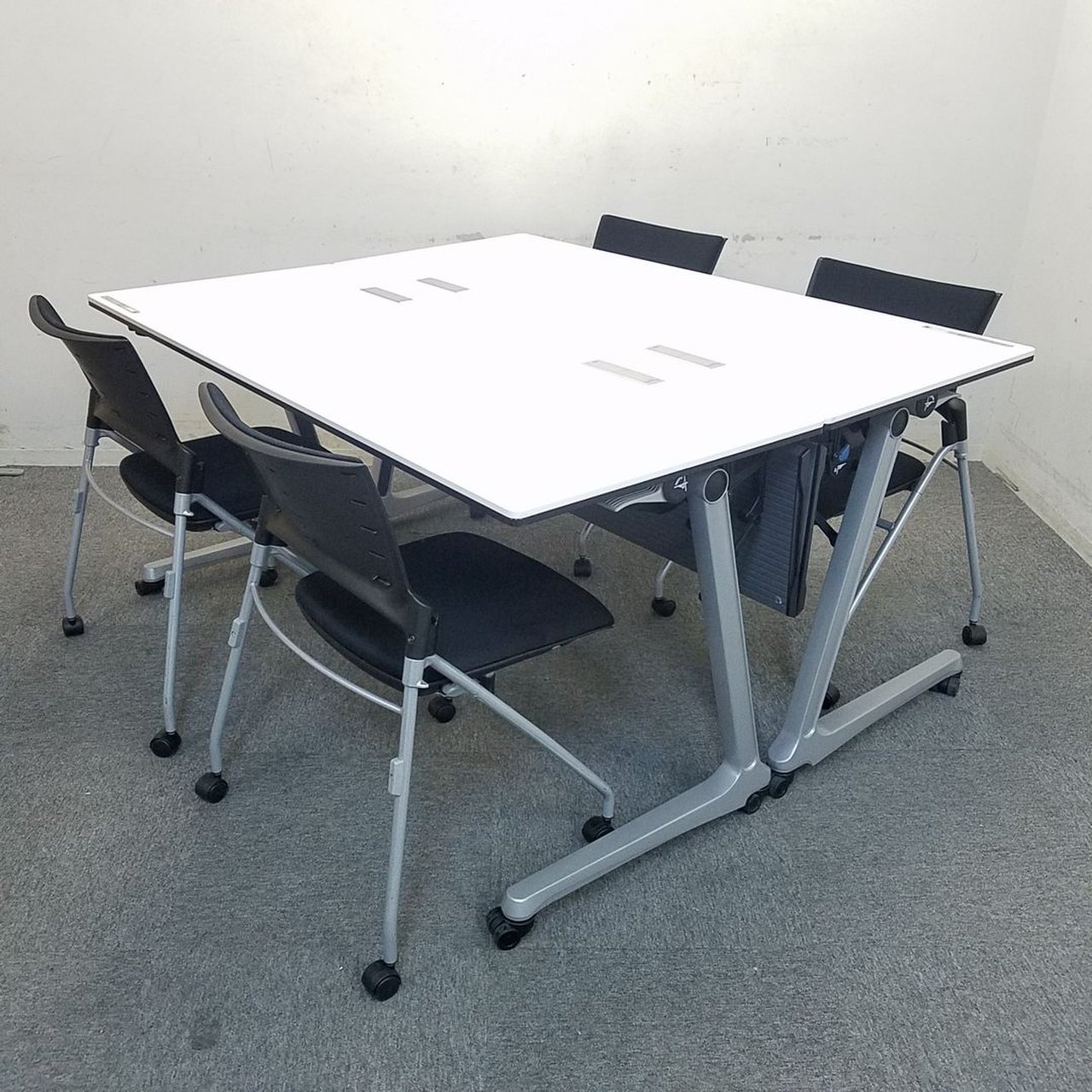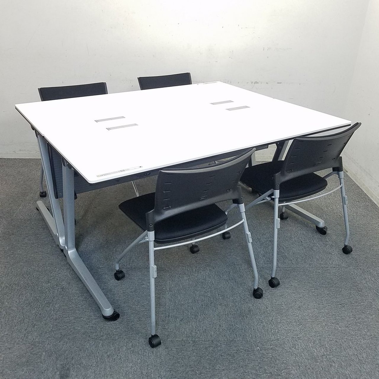 【イスとテーブルのセット販売!!】希少な配線カバー付きサイドスタック入荷!!中古 オフィス 家具- 大阪・堺店