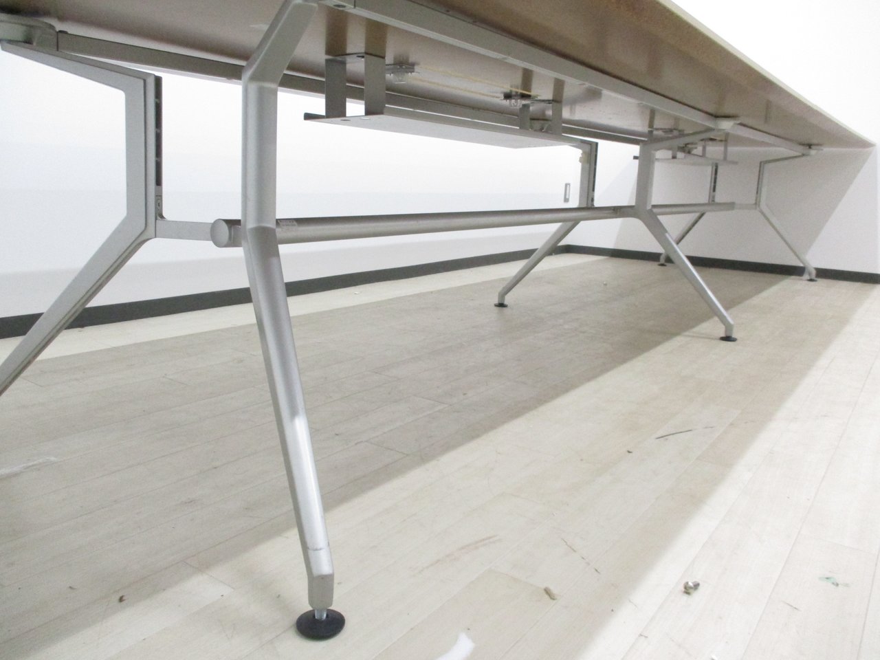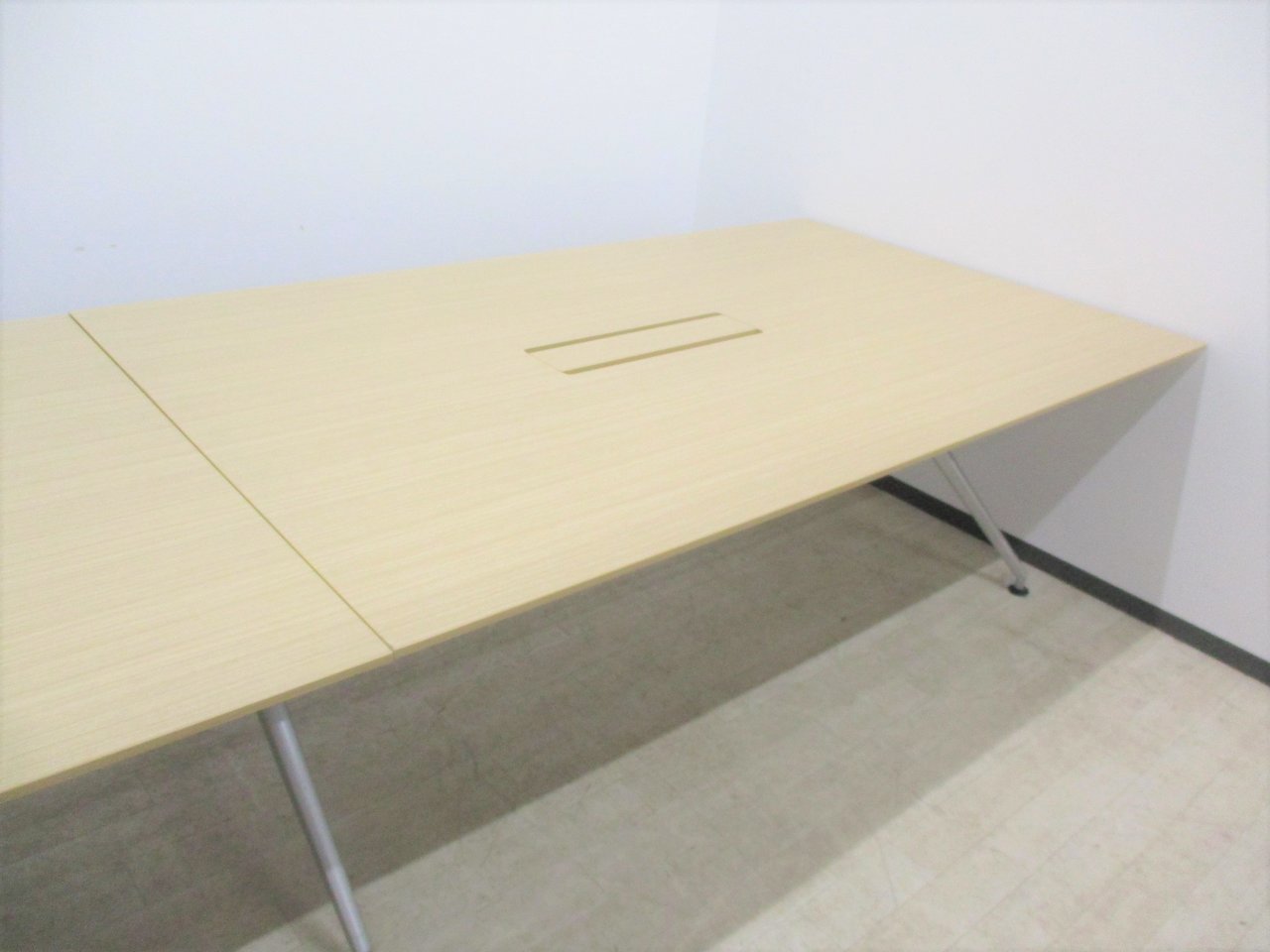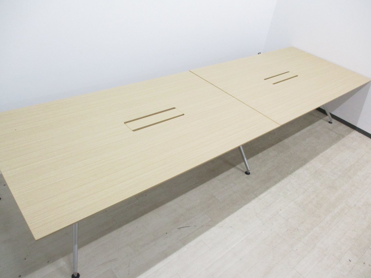 【会議室だけでなく休憩室でも!6~8名様対応・大型テーブル】■イトーキ(ITOKI) DDDシリーズ ミーティングテーブル 会議テーブル 幅2400×奥行900mm ■木目ナチュラル天板 脚シルバー色 オフィスバスターズ東大阪店
