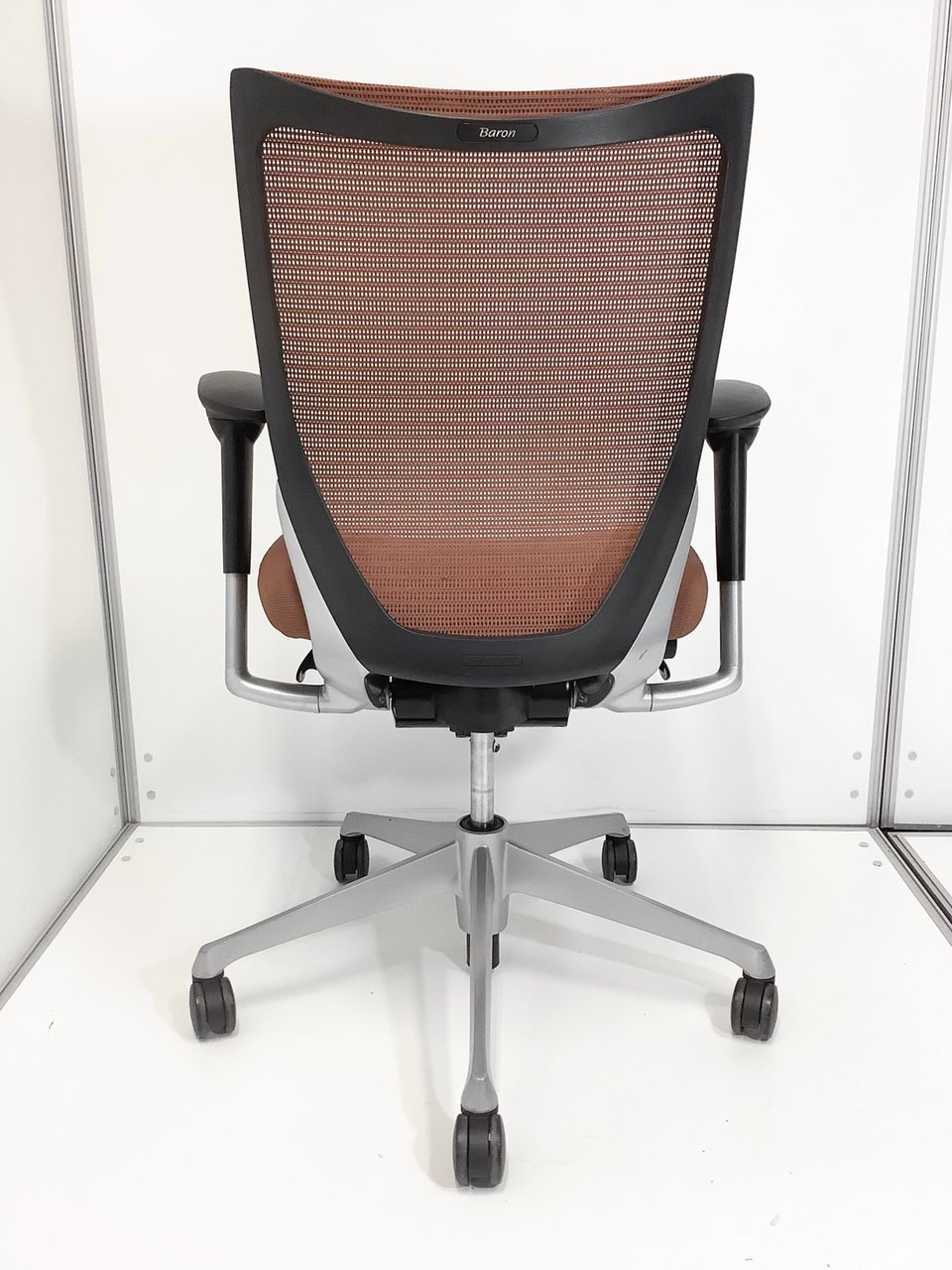 発売当時、既に人気を博していたオカムラの高級チェア、コンテッサから手元で座高調整ができるスマートオペレーション機能を取り除くなどしてリーズナブルにしたのがバロンです。その際に少しだけコンパクト化されました。そのことが、日本人の体格、日本のオフィス、家庭環境に適し、国内で多くのシェアを獲得する要因の一つになったのではないかと思います。