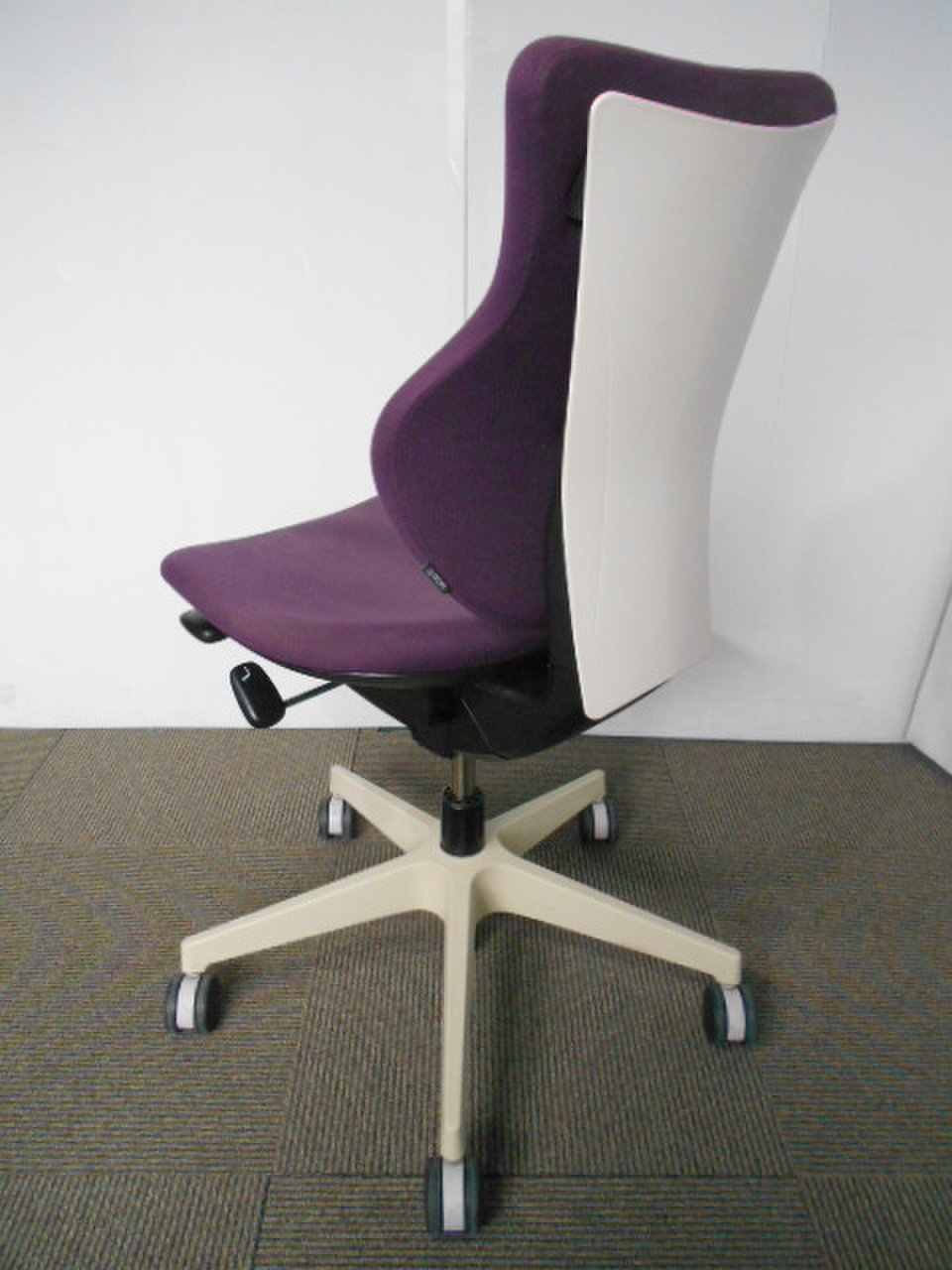 - 女性の作業姿勢に多く見られる2つの姿勢を、美しく支える背もたれ形状です。後傾しても背のラインを崩しません。