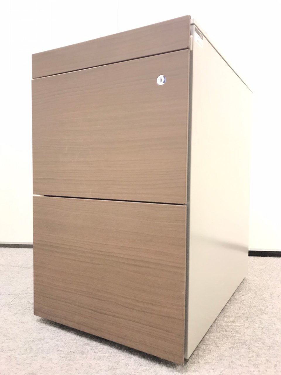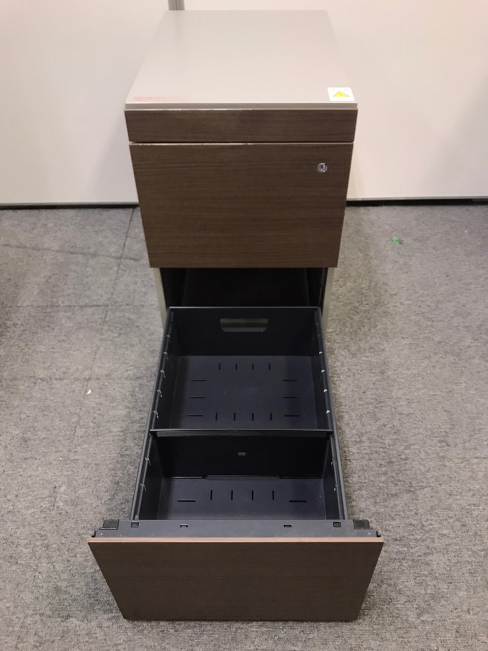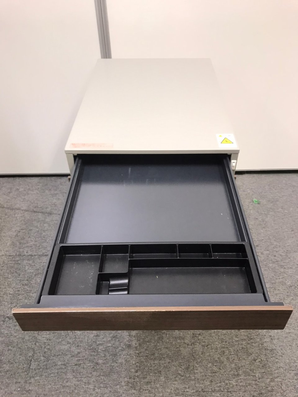 デスク天板とワゴン正面はウォールナット色の木目調となっており