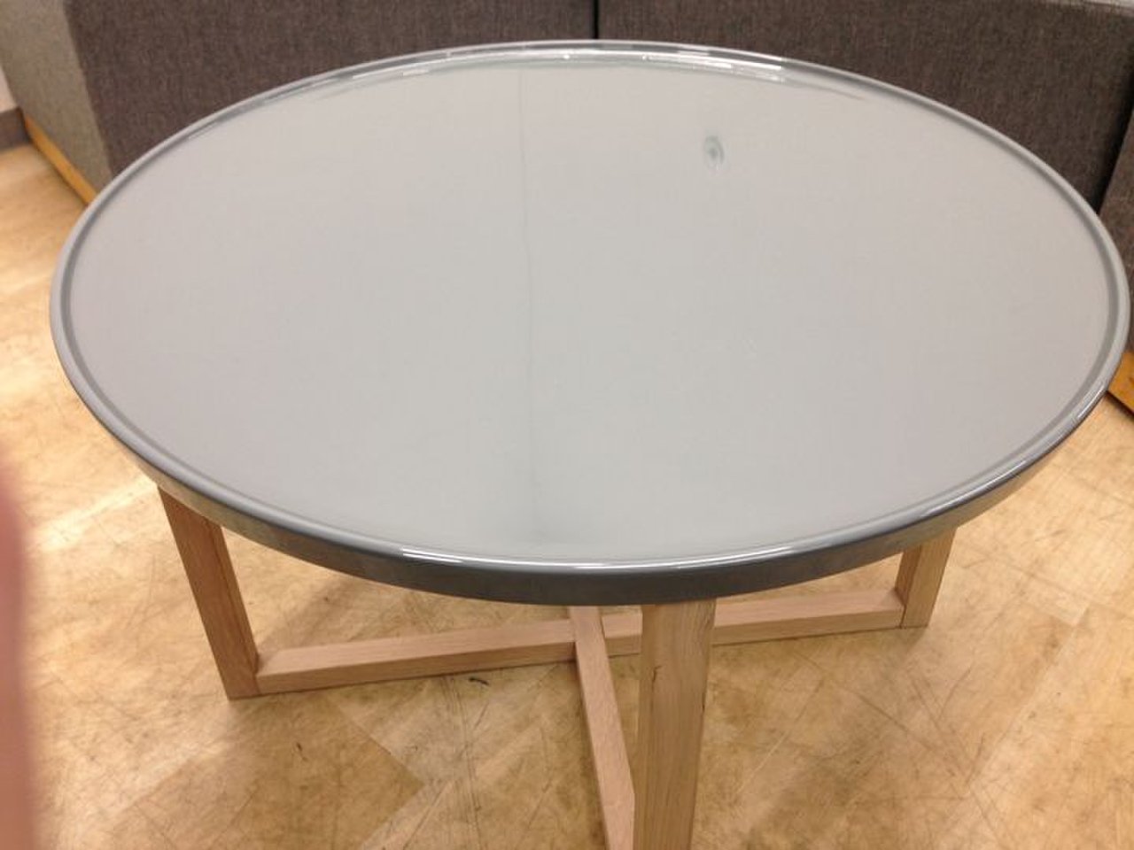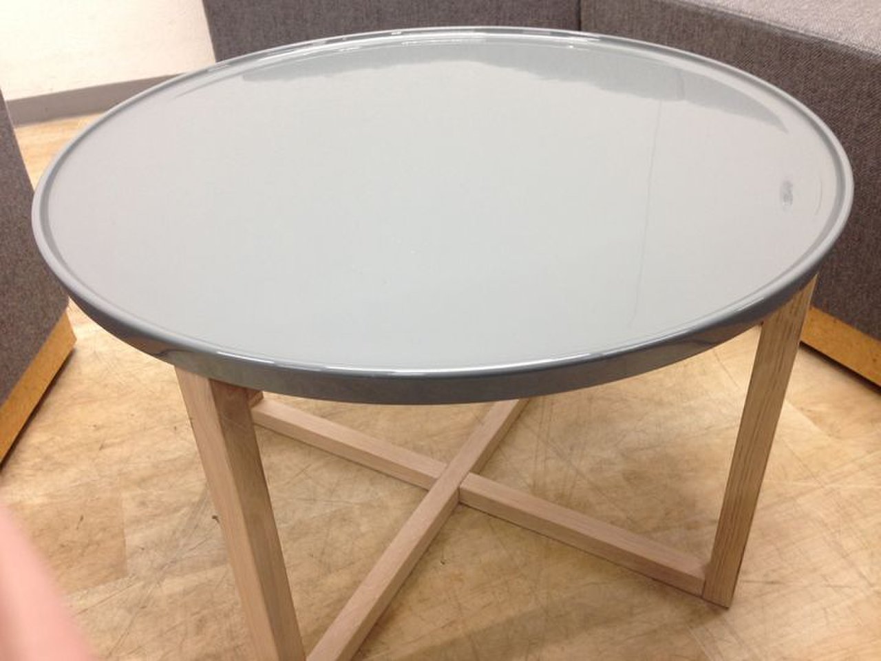 テーブルはコンパクトな丸型タイプで、邪魔になりにくい形です。ふぁぶり