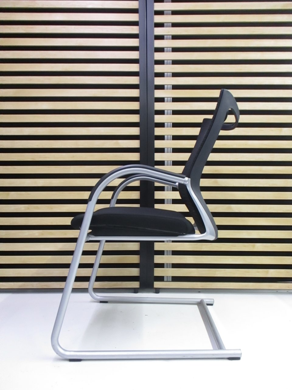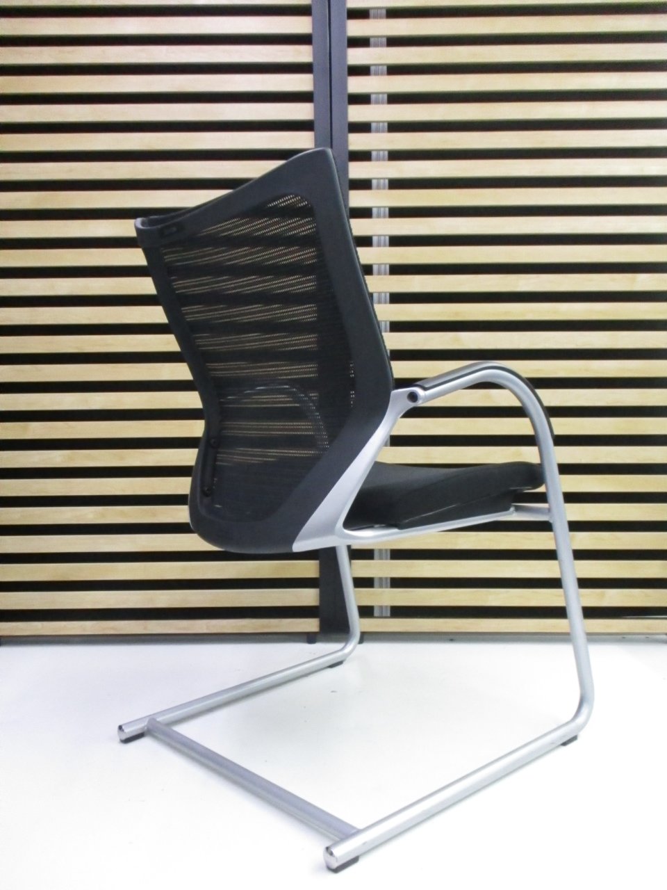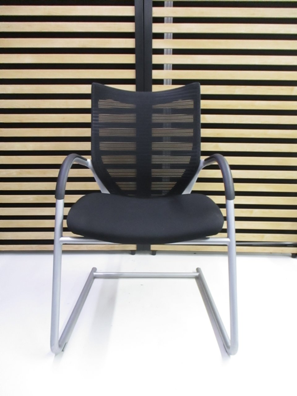 【在庫入替セール】オカムラ バロン ゲストチェア(ミーティングチェア) 背メッシュ×座クッション カンチレバー脚 ブラック×クロームメッキ