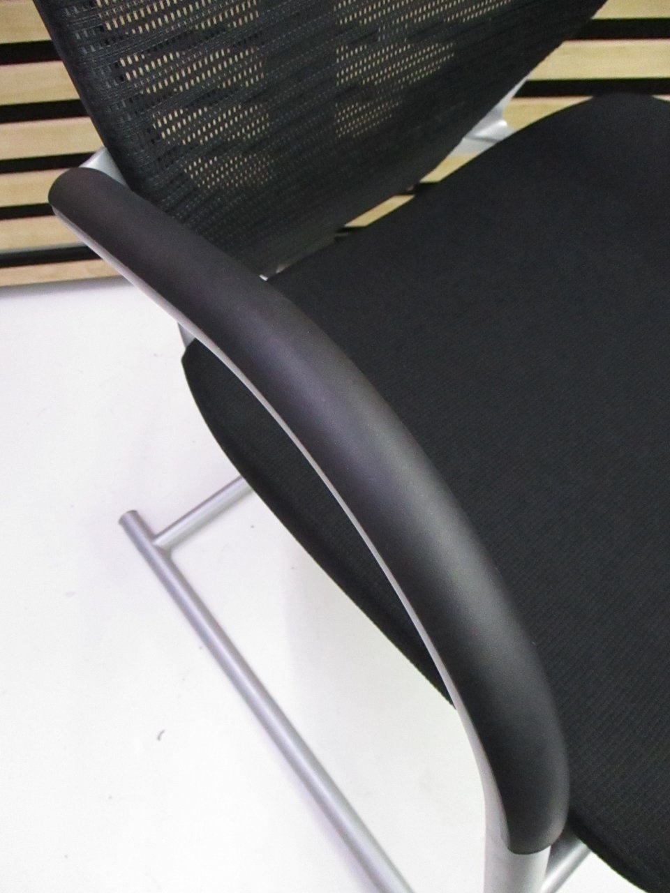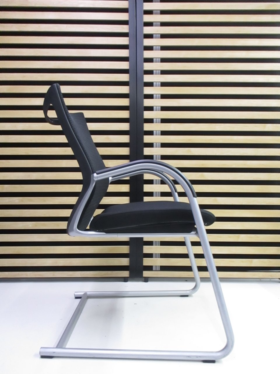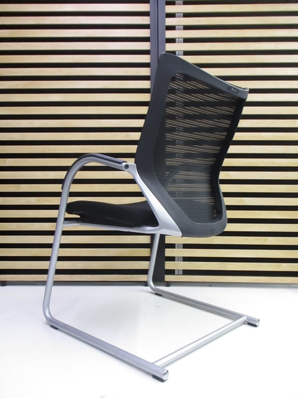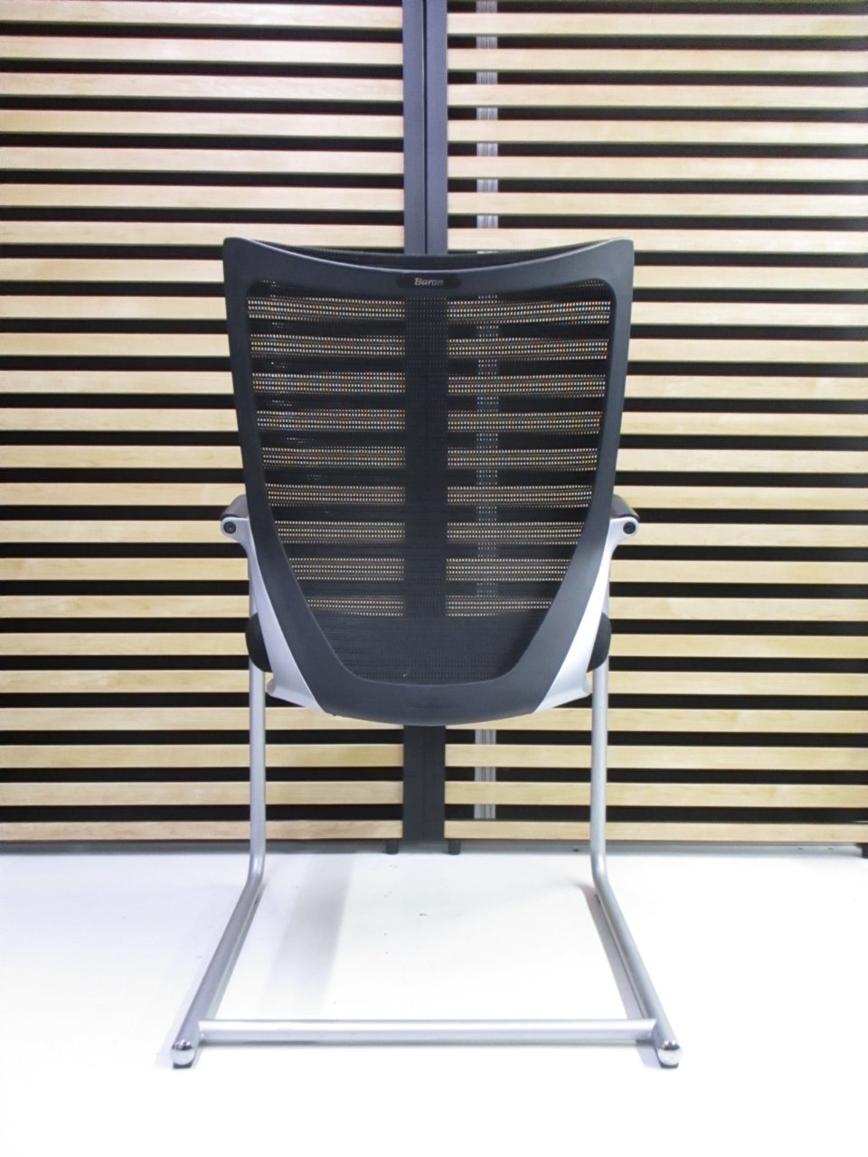 【在庫入替セール】オカムラ バロン ゲストチェア(ミーティングチェア) 背メッシュ×座クッション カンチレバー脚 ブラック×クロームメッキ