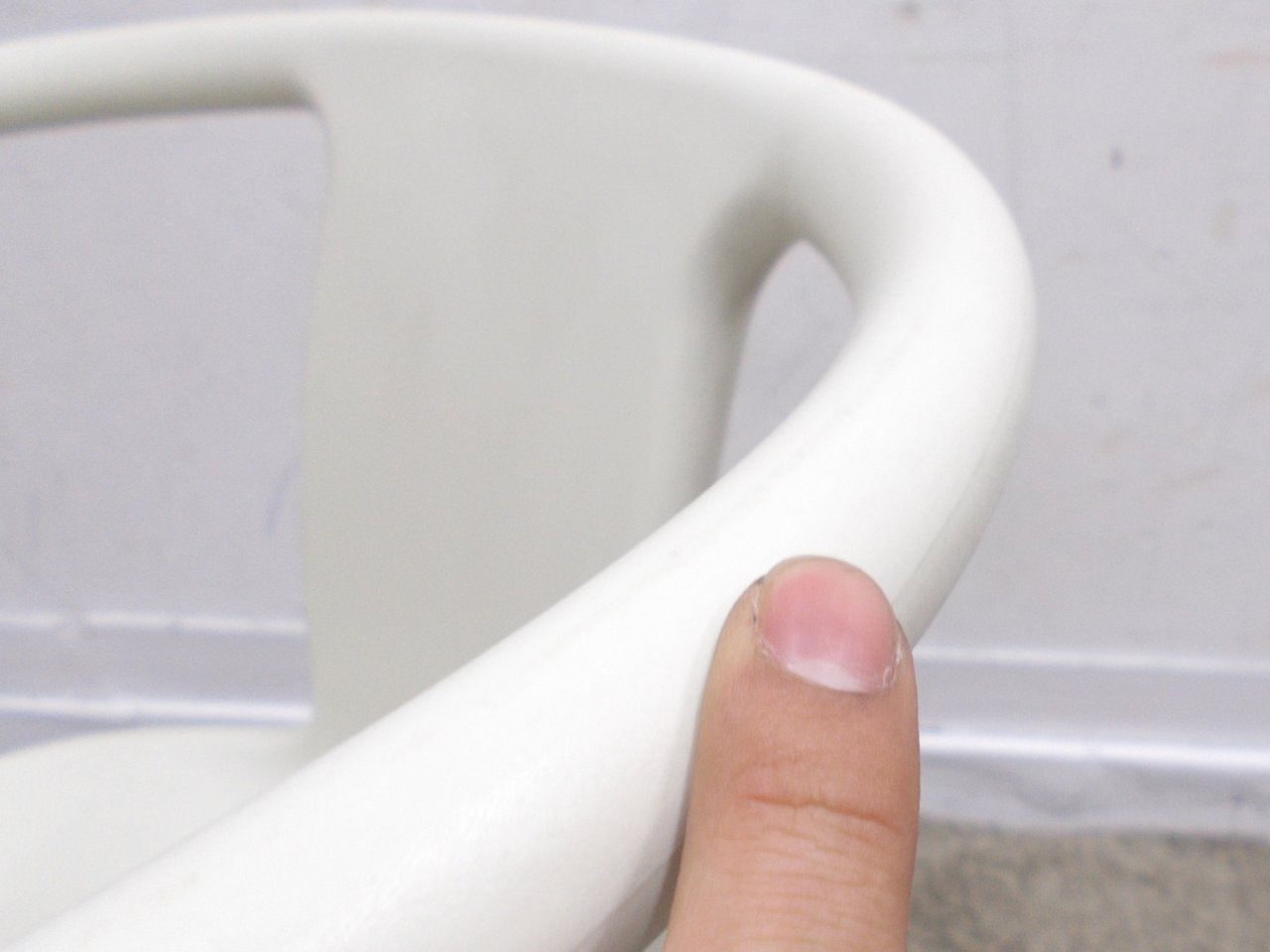 - かなり強い濃い黄ばみ・変色が商品全体にある。(例、座面・背もたれ、脚部等にある。)