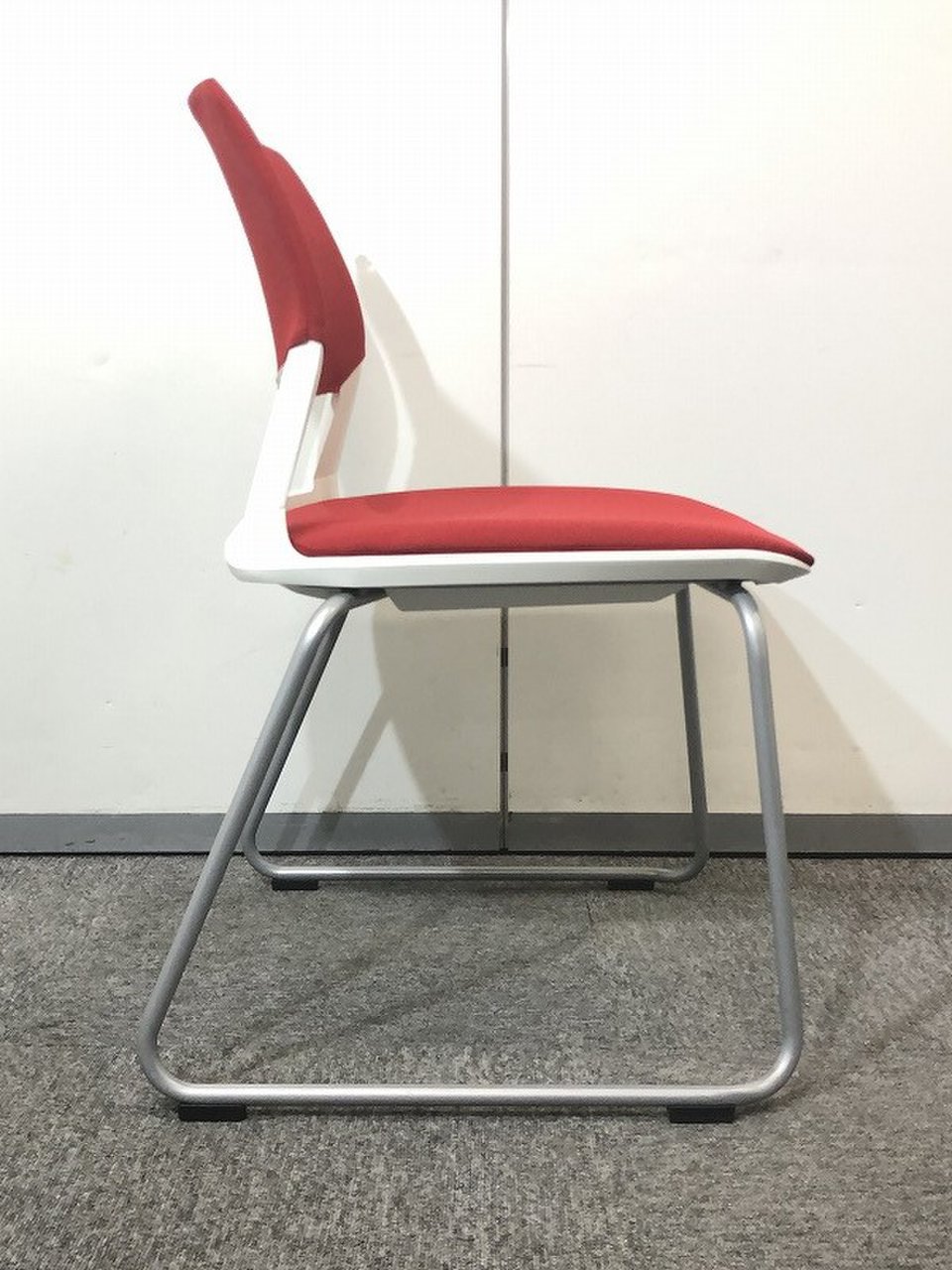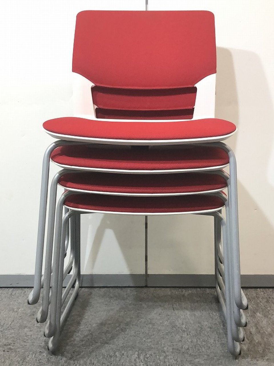 【しっかりクッションで座りやすい!】■コクヨ製 スタッキングチェア 座:レッド 背:ホワイト ■フローリングでも使いやすい!ゴムキャスタータイプ!