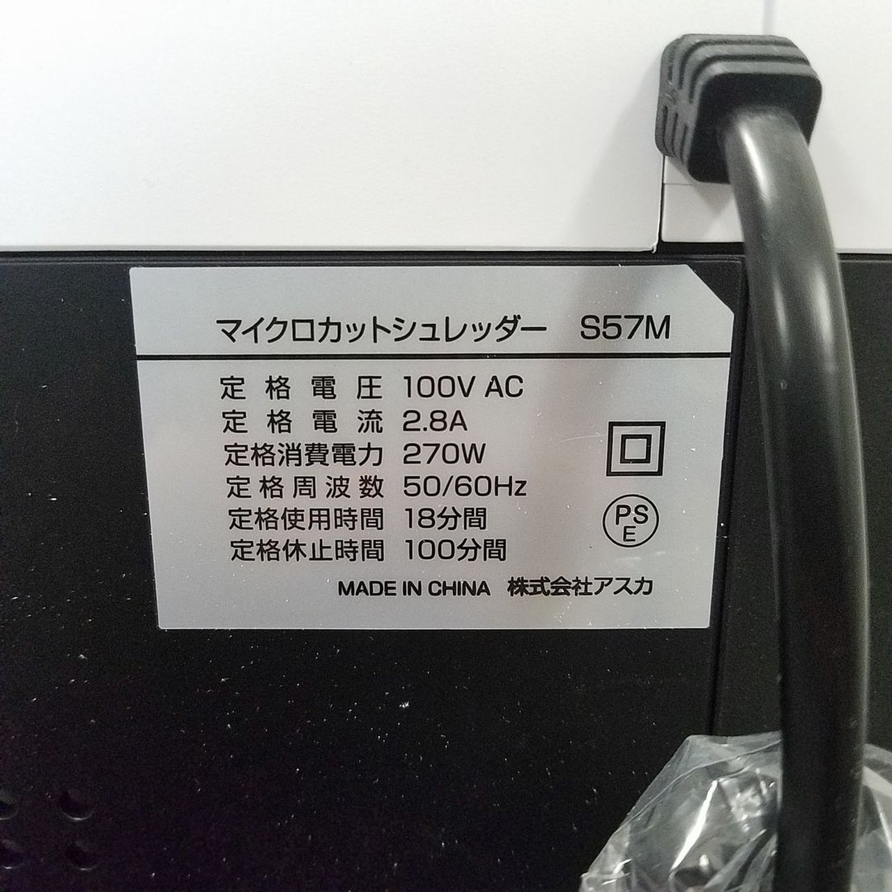 ・定格細断枚数:9枚(A4コピー用紙 50/60Hz)