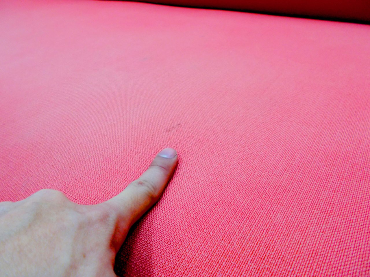 - あり黄ばみ・変色が広い範囲にうっすらある、または濃い黄ばみ・変色が一部ある。(例:三人用ソファ、二人用ソファ、一人用ソファの場合、背もたれ、肘かけ、座面等、 センターテーブルの場合、天板、脚にある。)