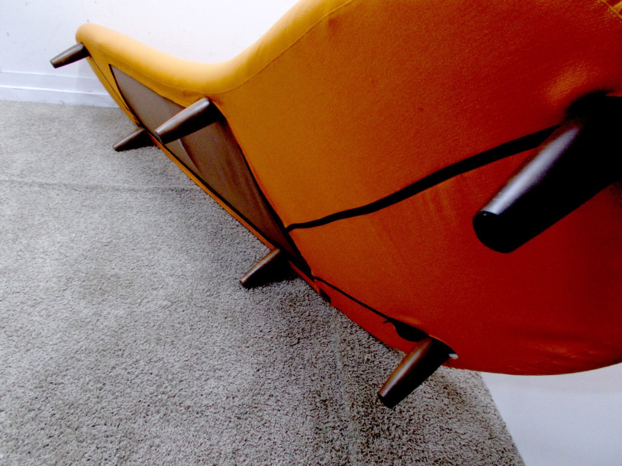 - かなり強い濃い黄ばみ・変色が商品全体にある。 (例:三人用ソファ、二人用ソファ、一人用ソファの場合、背もたれ、肘かけ、座面等、センターテーブルの場合、天板、 脚にある。)