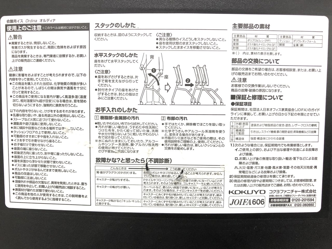【中古】 オルディナ CKH-690E6 コクヨ/KOKUYO スタッキングチェア 281172