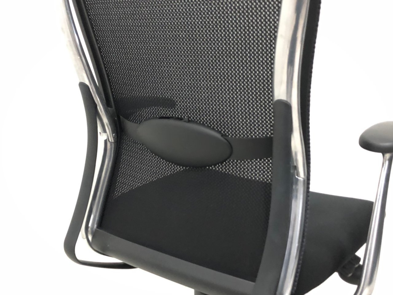 - 大きな曲線を描くフレームと表裏で見え方が変わる特殊メッシュで構成された背もたれ、そして2層構造の技術によって実現できた快適ながらも薄い座面は、先進的でありながらも柔らかさのあるスタイリッシュなデザインを実現しています。
