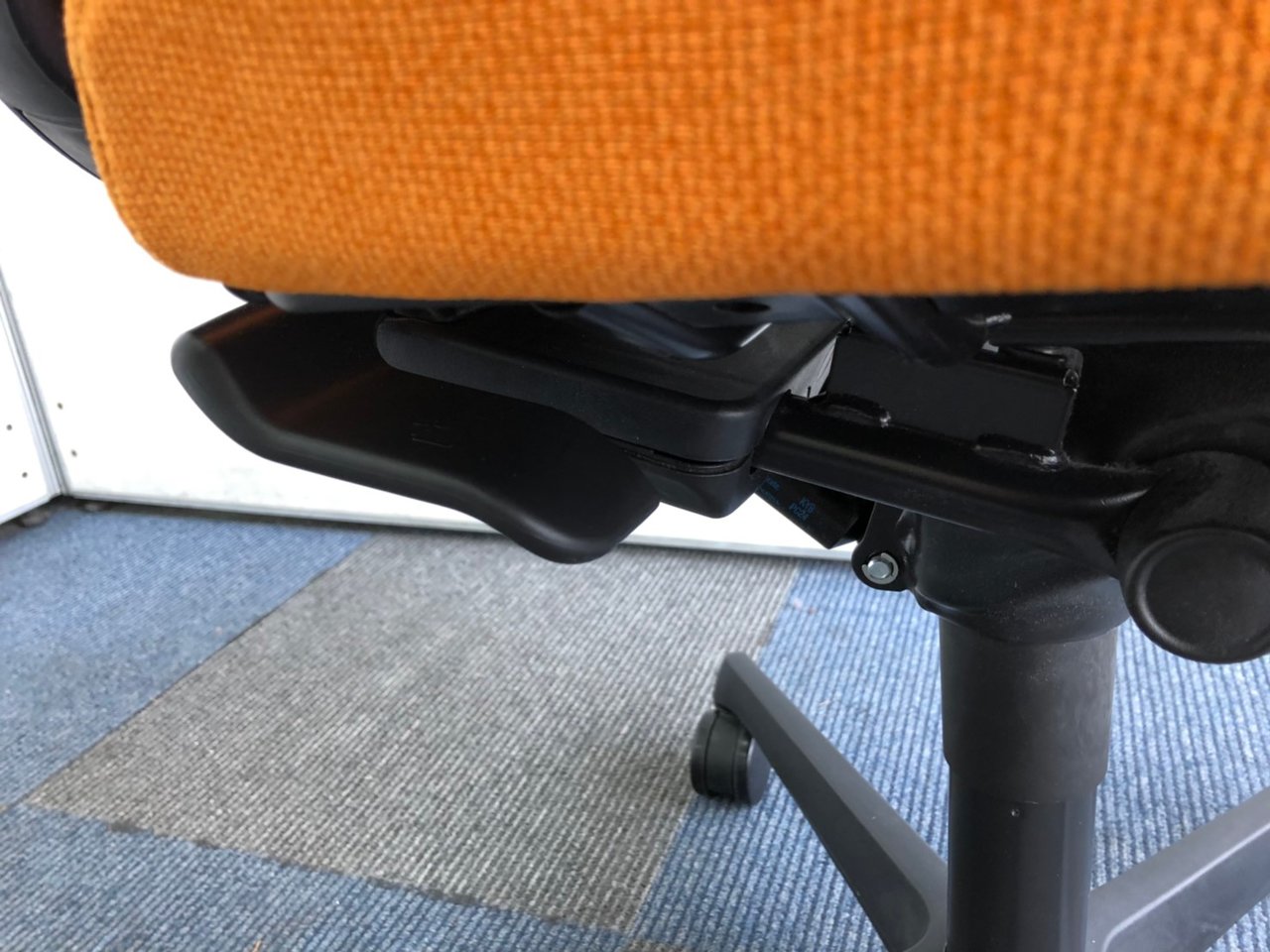 しかも、背もたれ両側のレバーを上下に動かすことによって、ランバーサポートの支点を上下に60mm動かすことができるので、体格に合わせて調整できます。