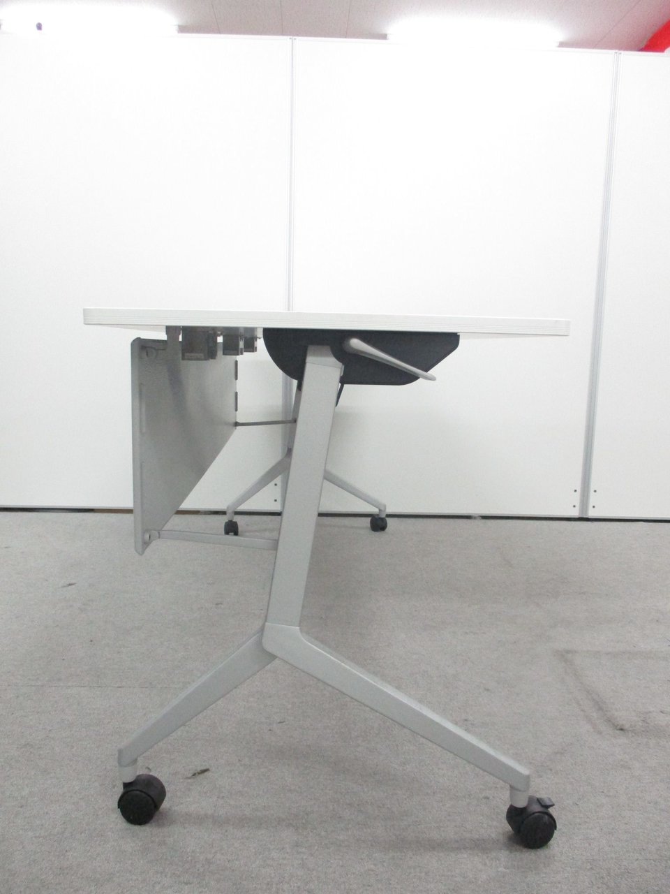 【折りたたみ収納が秀逸!スタイリッシュなデザインで高品質!】■コクヨ(KOKUYO)製 リーフラインシリーズ サイドスタックテーブル フラップタイプ W1200×D450㎜ ■キャスター・幕板付 ■ホワイト