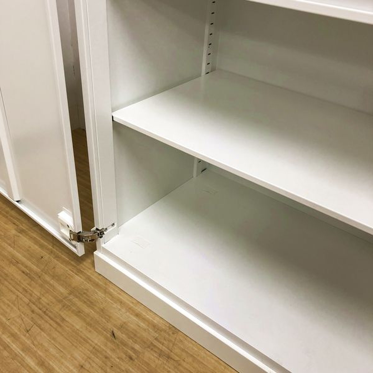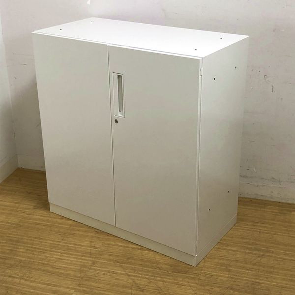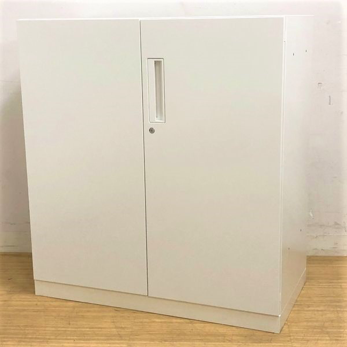【収納物がひとめで分かる両開き戸タイプ!】■コクヨ(KOKUYO)製 エディア(EDIA)シリーズ 両開き書庫 ローキャビネット H1130㎜ ■天板・ベース付 ■ホワイト ■シリンダー錠【IB】