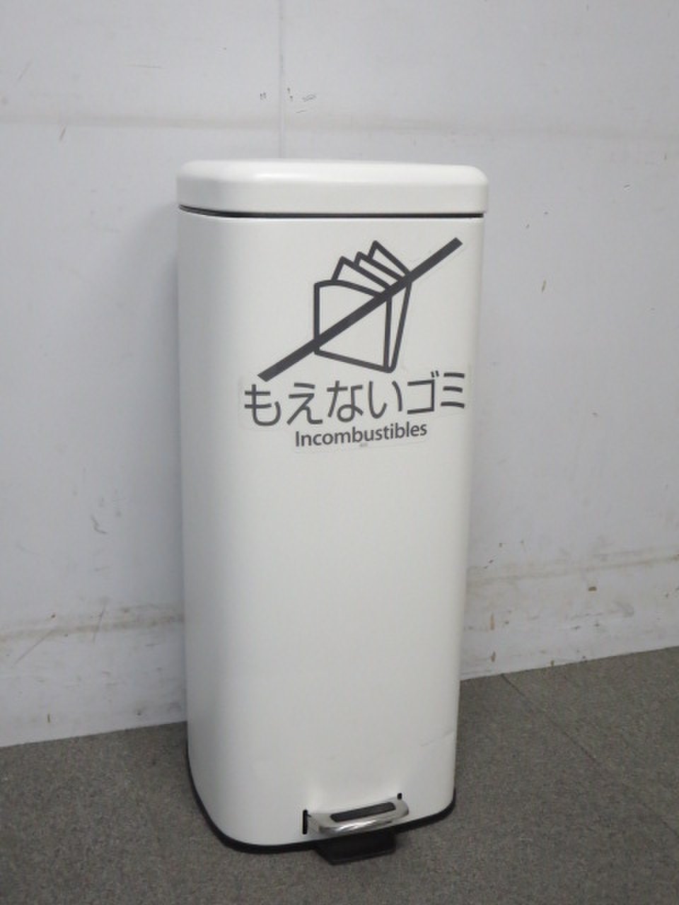 【フットペダル式ゴミ箱】■ラバン ホワイト【もえないゴミ】- 川崎店