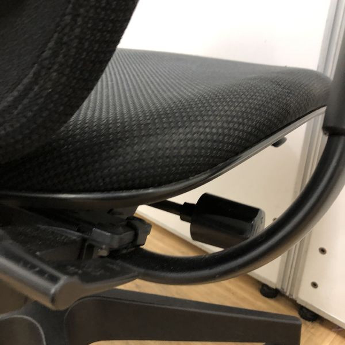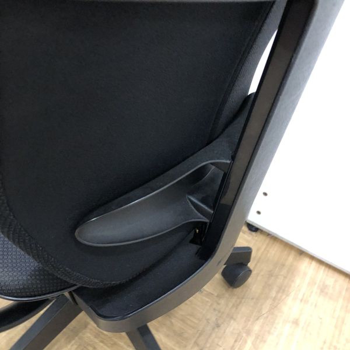 例えば、座面は、イトーキ独自の"ベンディングシート"という機構により、クッション、インターシェル、空洞という三層構造になっています。 この真ん中に挟まっているインナーシェルが、着座時の姿勢に合わせて体重を分散してくれるので、どんな姿勢でも体になじみ、疲労を軽減してくれます。 さらに、座面は前後に4センチほど奥行きを調整でき、前傾姿勢で座りたい、深く腰掛けたい、膝裏を圧迫されたくないなど、個人の好みに合った快適さにカスタマイズが可能となっています。