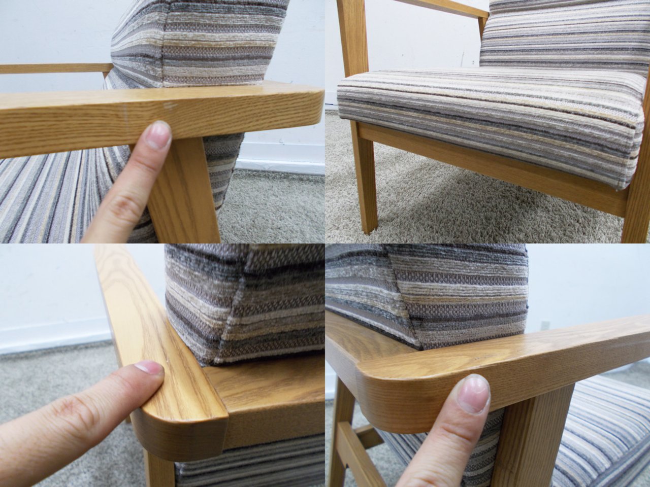- 目立つ箇所複数あり深い傷・破れ・ほつれ・へたり・しわが商品全体にある。(例、座面・背もたれ、脚部等にある。)