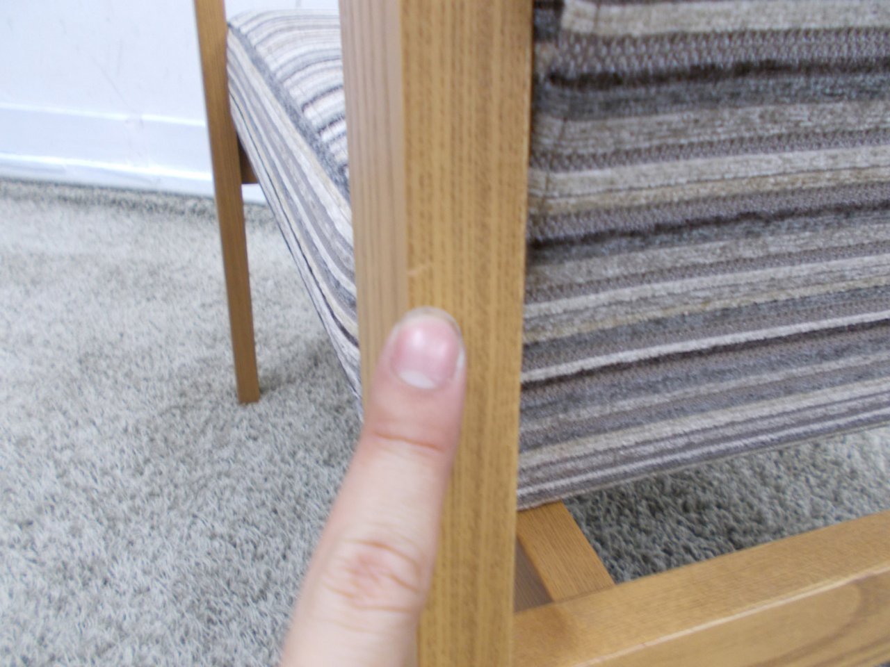 - あり黄ばみ・変色が広い範囲にうっすらある、または濃い黄ばみ・変色が一部ある。(例、座面・背もたれ、脚部等にある。)
