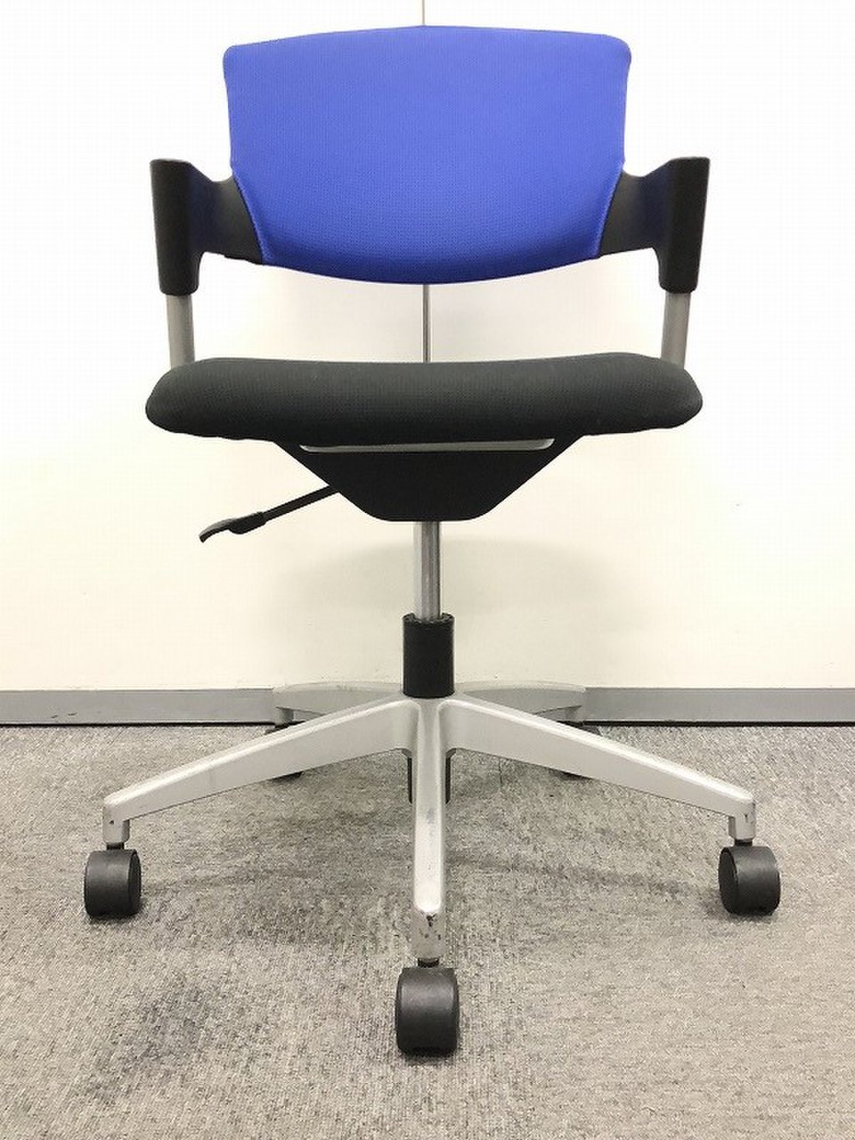 【シンプルスマートなスタッキングチェア!分厚いクッションで長時間でも快適な座り心地!】■コクヨ(KOKUYO)製 プロッティ (Protty) 肘付 ミーテイングチェア スタッキングチェア ■固定肘 ■ブルー×ブラック ■背面ヌードタイプ