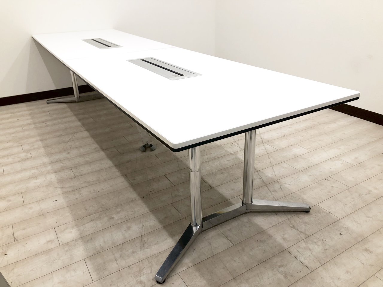【ワンランク上のカンファレンス空間を演出!】■オカムラ ラティオシリーズ 会議用テーブル W3200mm(8~12名用) 配線ボックス付 ホワイト 【Okamura RATIOⅡ】