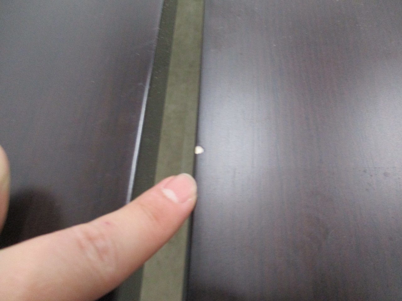 - あり黄ばみ・変色が広い範囲にうっすらある、または濃い黄ばみ・変色が一部ある。(例、天板、幕板、棚板、サイド部分、脚部等にある。)