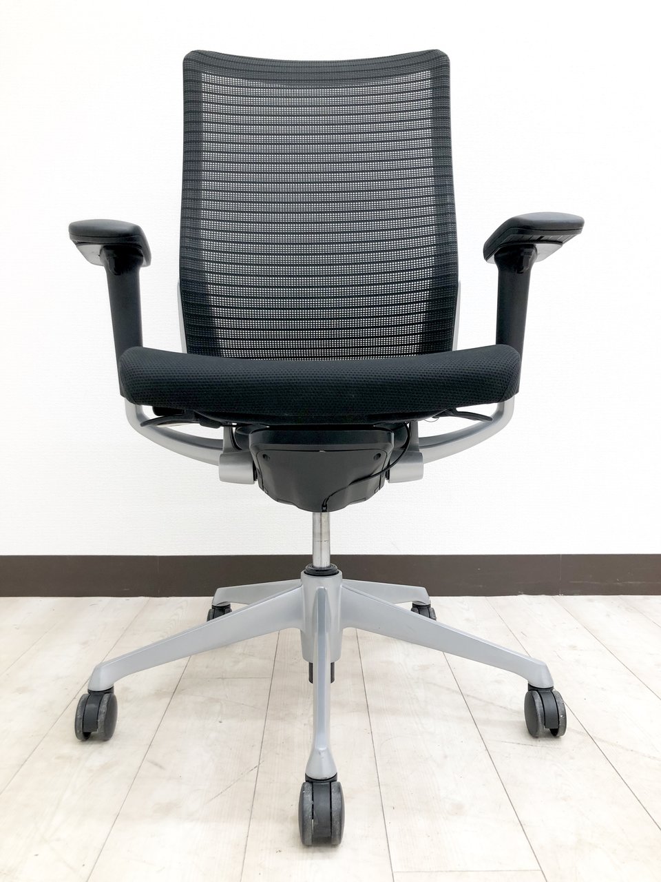 【着座で始まるコーラルものがたり】オカムラ コーラル 肘付 メッシュ ブラック 【固定肘タイプの脚までオールブラック仕様!】〈岐阜・愛知・三重・静岡・福井〉