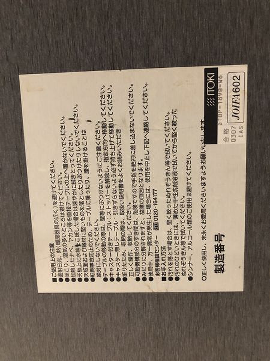 - 一部不具合あり天板歪み、アジャスター無し、キャスター使用不可ようなそのテーブルの本来の効用を果たすための機能以外の一部が使用不可な状態。(例、キャスターロッ ク機能使用不可、棚板無し等がある。)