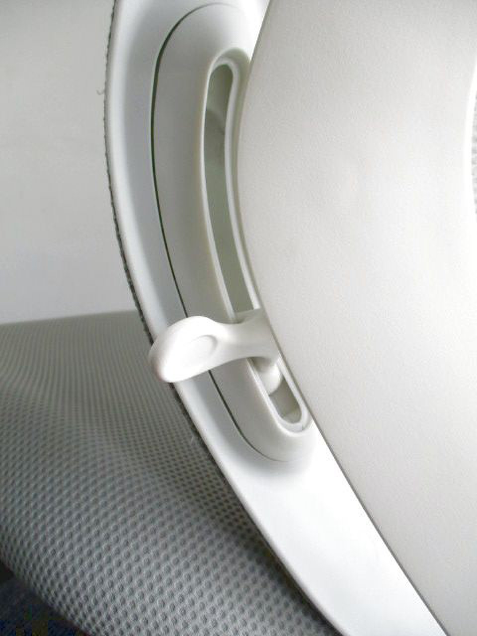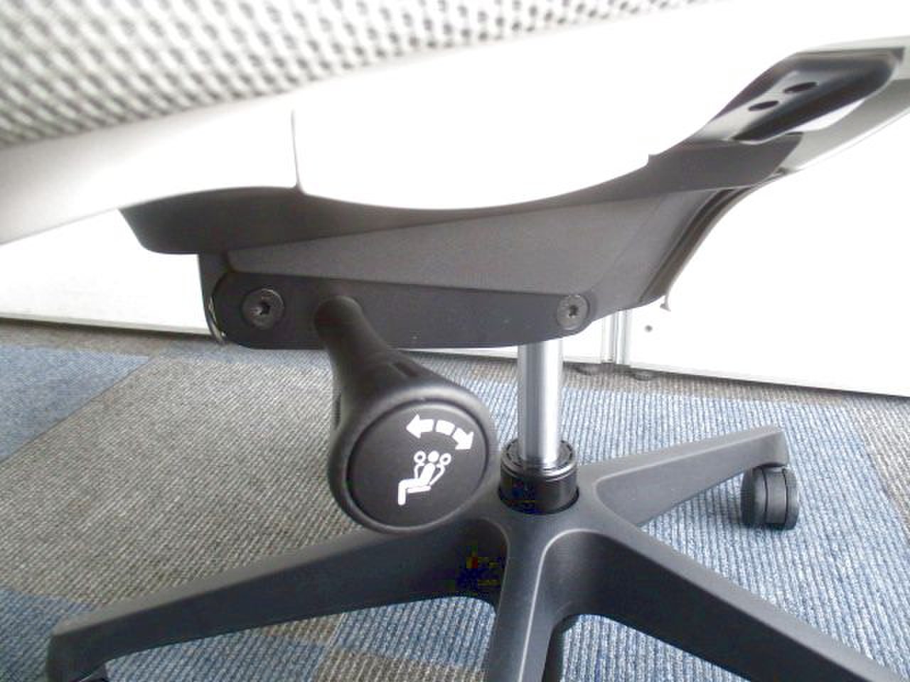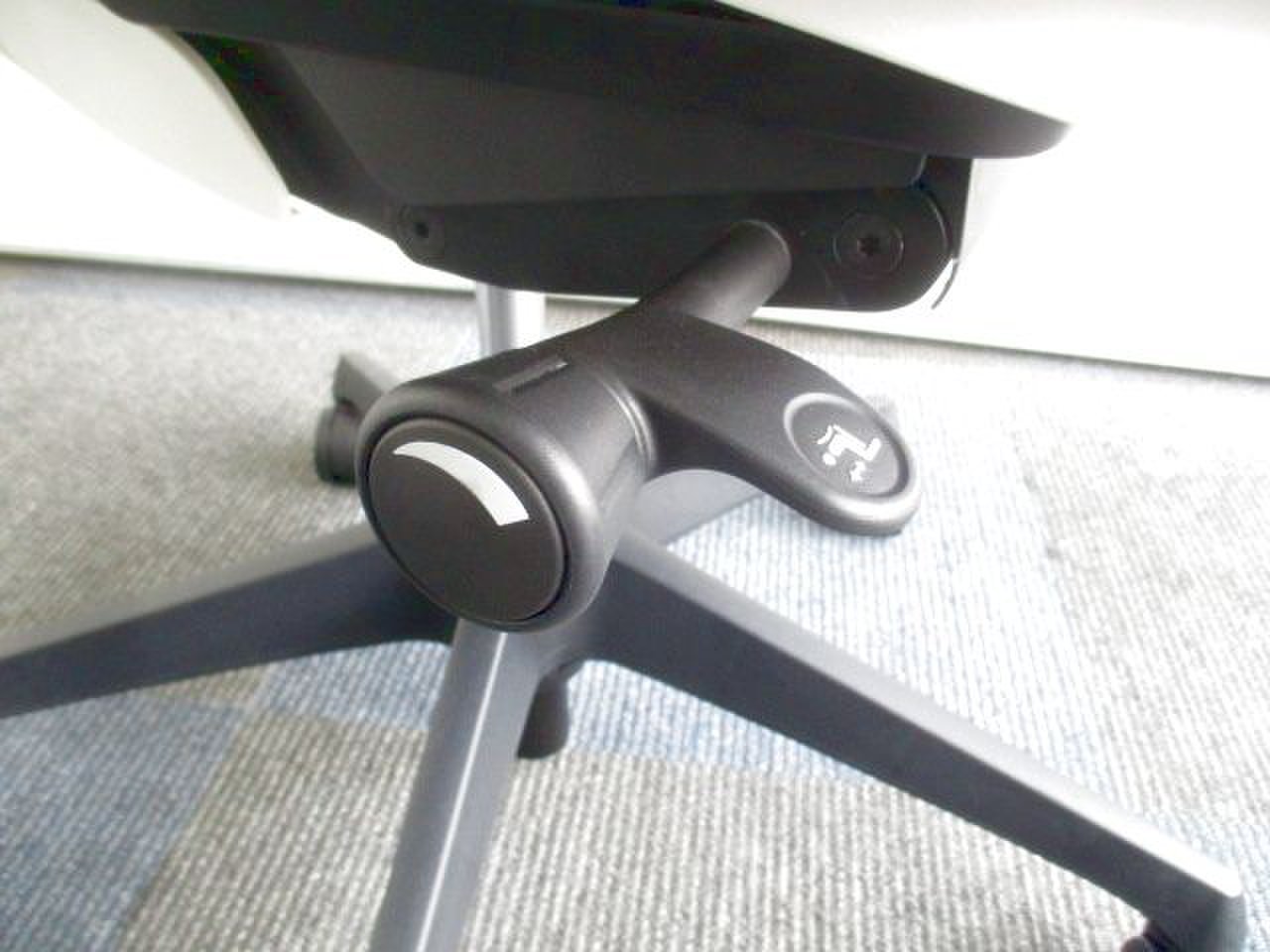 - 座面右下のダイヤル操作で、リクライニングの強弱調整が行えます。これまでのダイヤル式よりも、少ない回転数で、最弱?最強の調整が可能です。