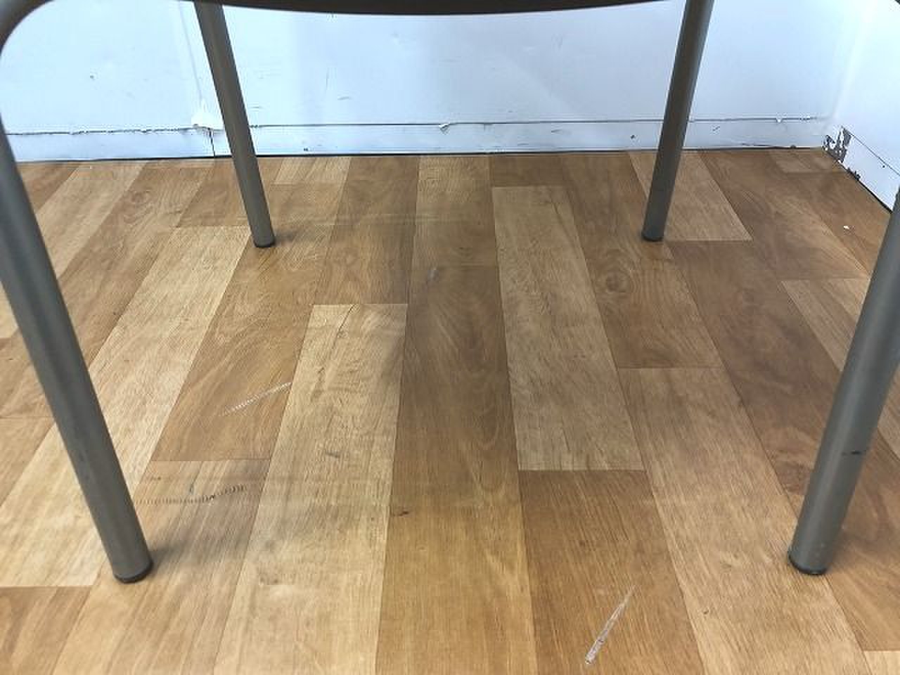 - かなり強い濃い黄ばみ・変色が商品全体にある。(例、座面・背もたれ、脚部等にある。)