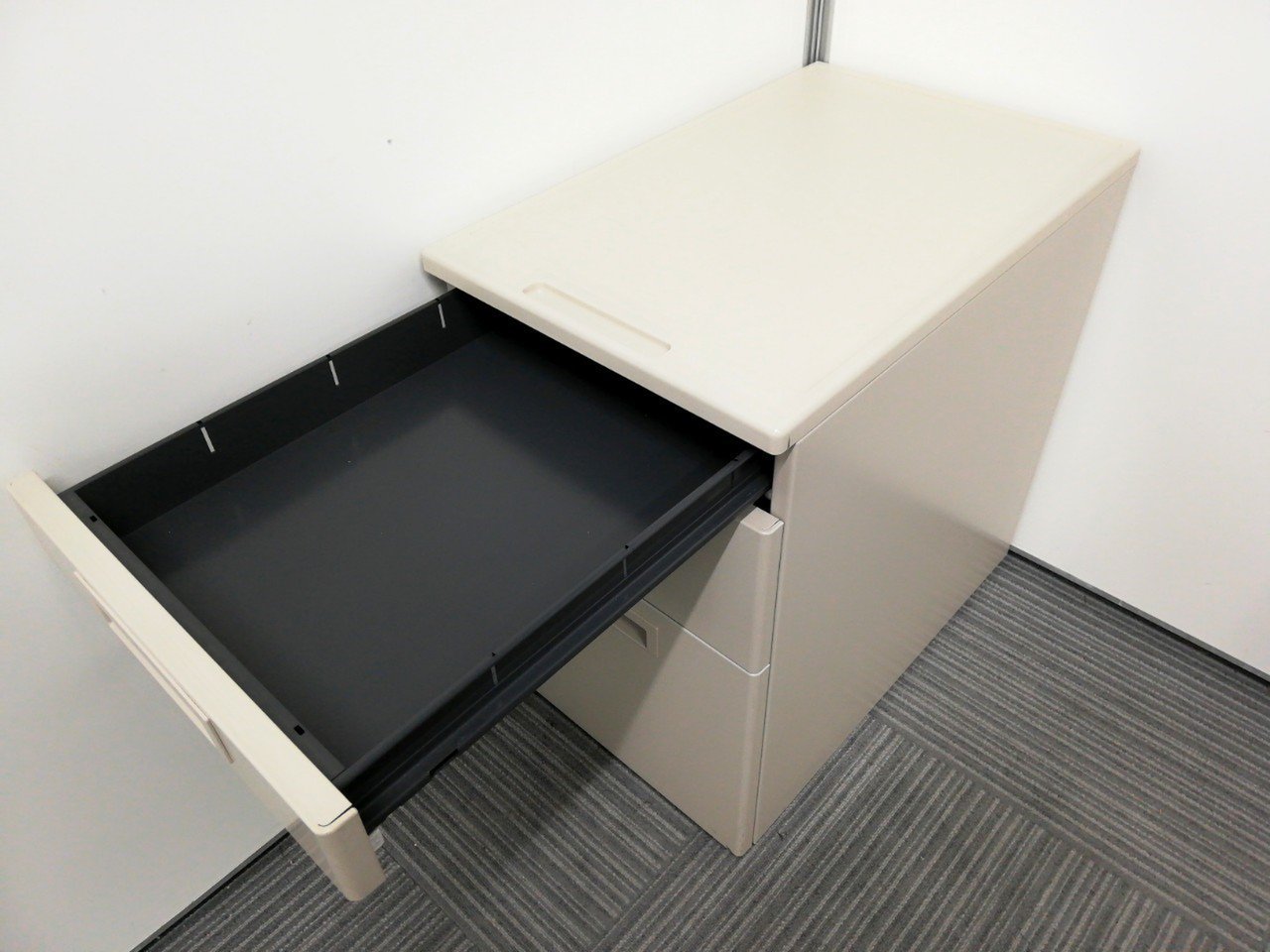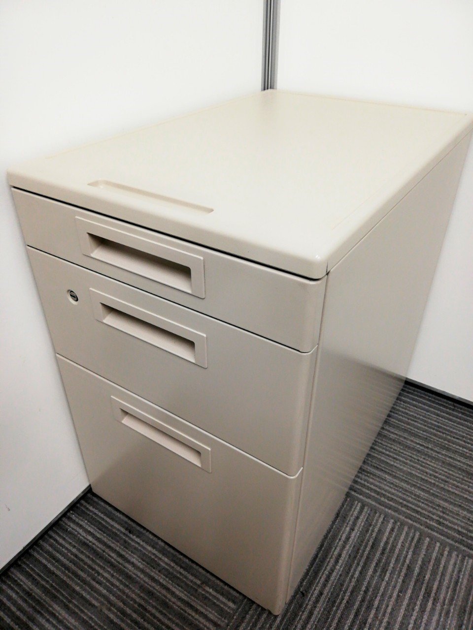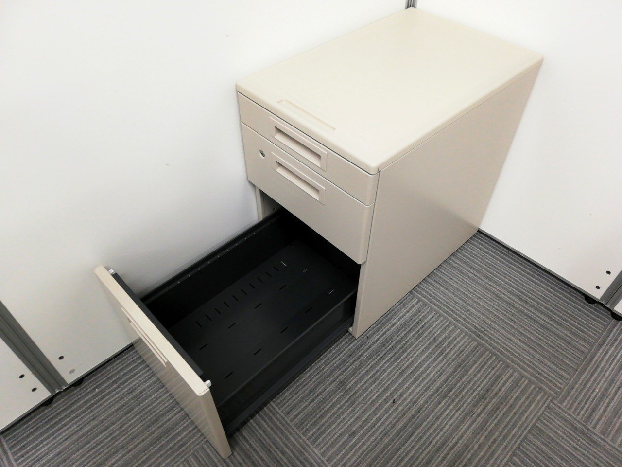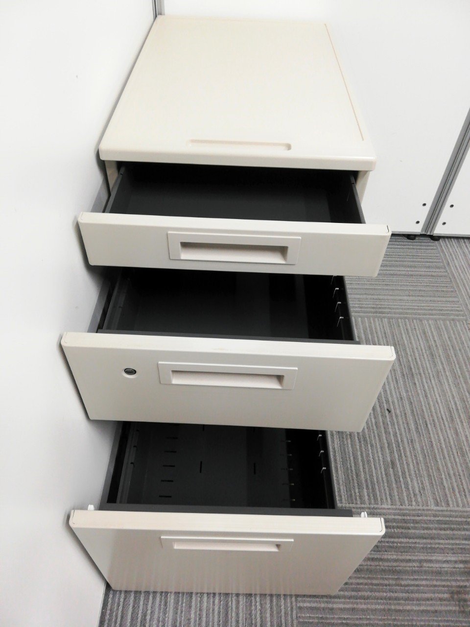 - 一部不具合ありその脇机・ワゴンの本来の効用を果たすための機能以外の一部が使用不可な状態。(例、引出が開閉しづらい、 キャスターロック機能使用不可、ラッチ不良 等がある。)