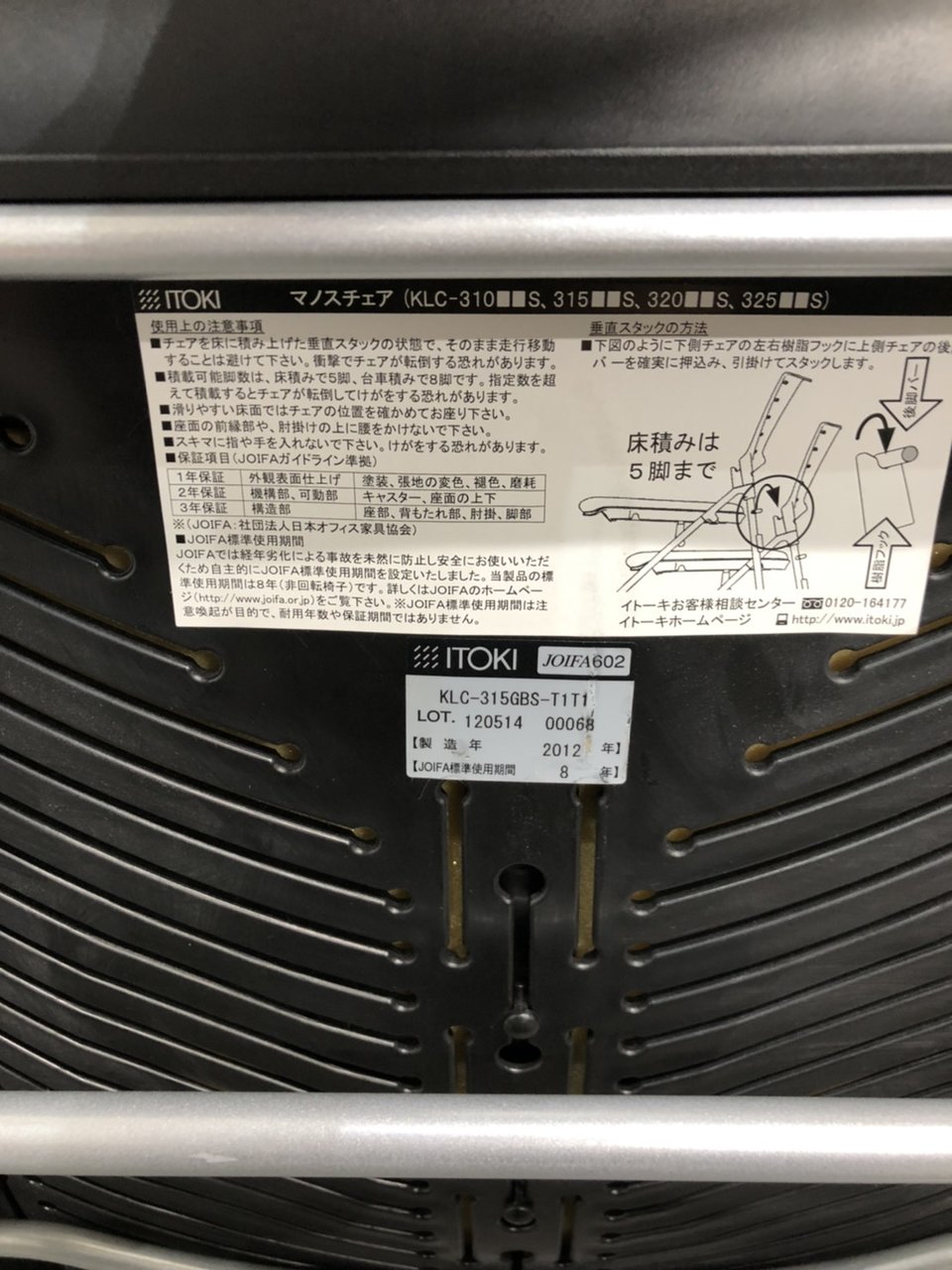 【中古】 マノスチェア KLC-315GBS イトーキ/ITOKI スタッキングチェア 282420