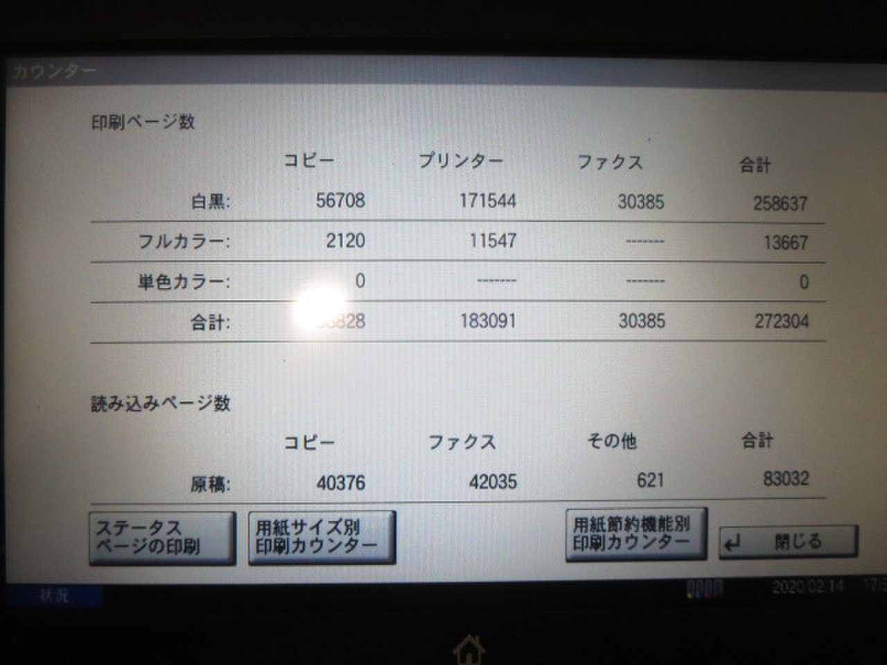 | 占有寸法[W×D] | 602×665×790mm(コンタクトガラス上面) 機械占有寸法 920×665mm(手差しトレイ使用時) 1,688×665m |