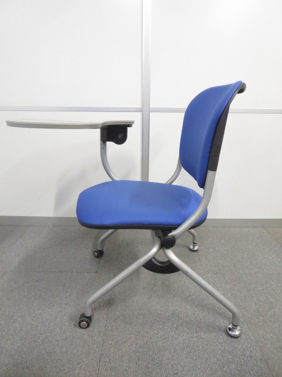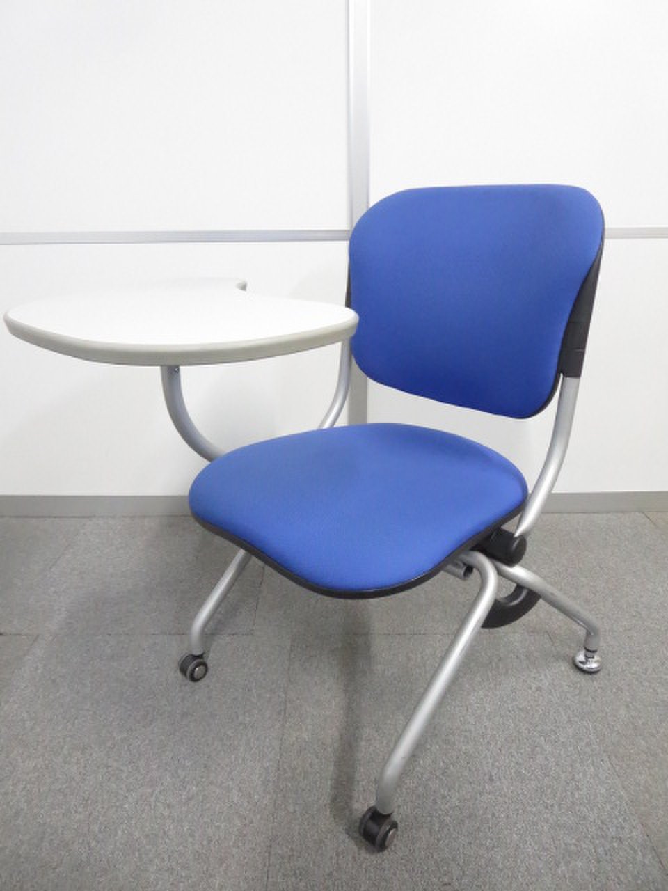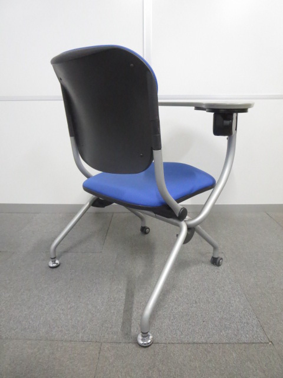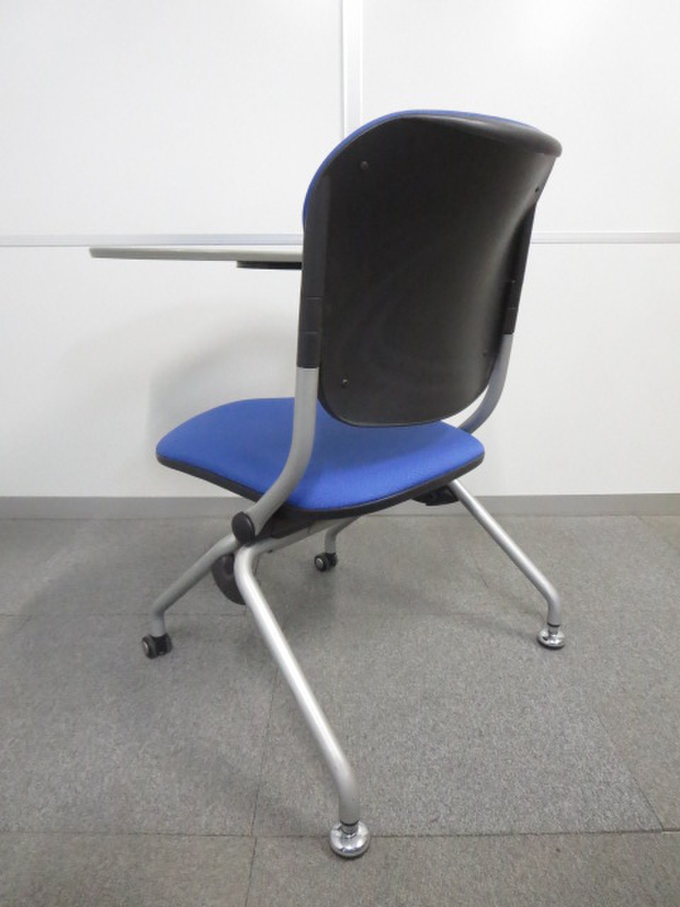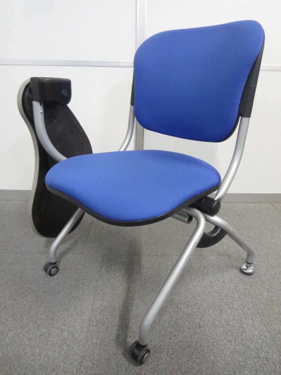 【テーブルを使わず空間を有効利用!】■メモ台付ネスティングチェア ブルー ■オカムラ製 トーションラインシリーズ!- 川崎店
