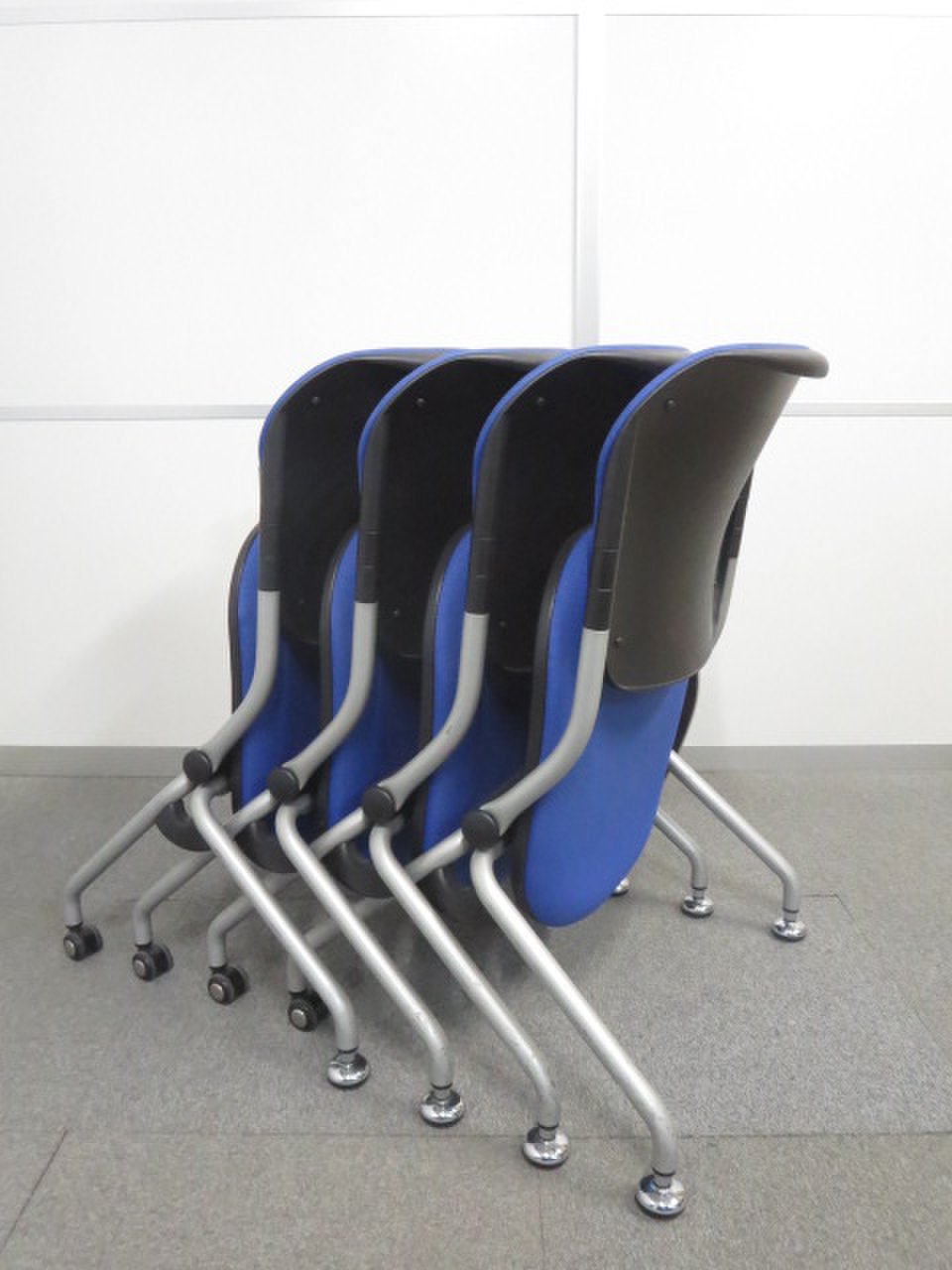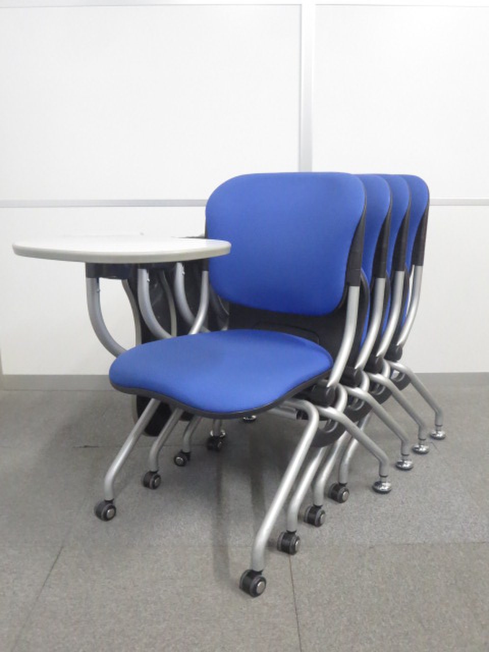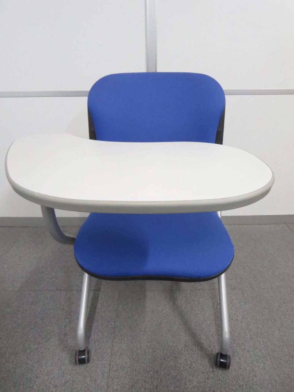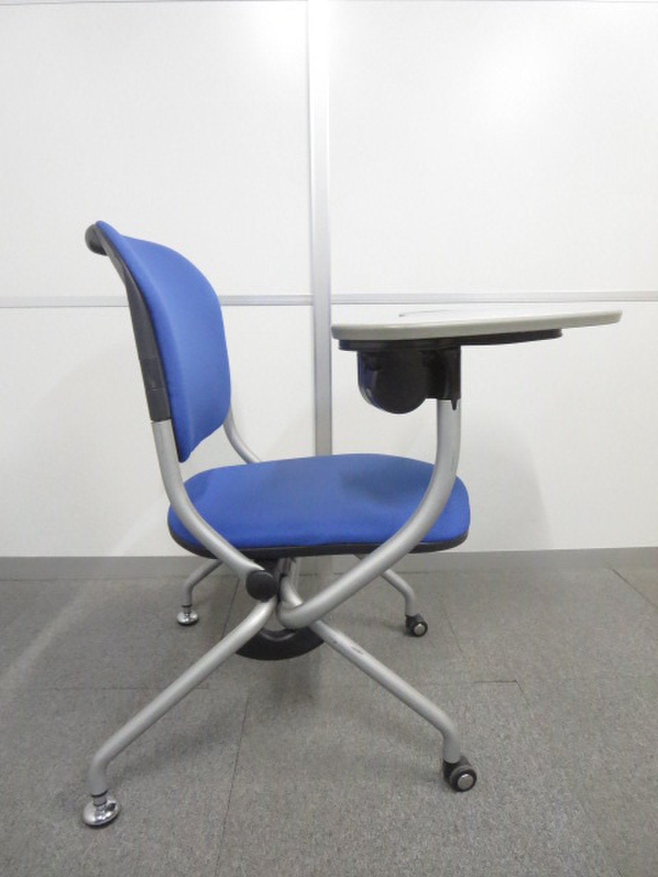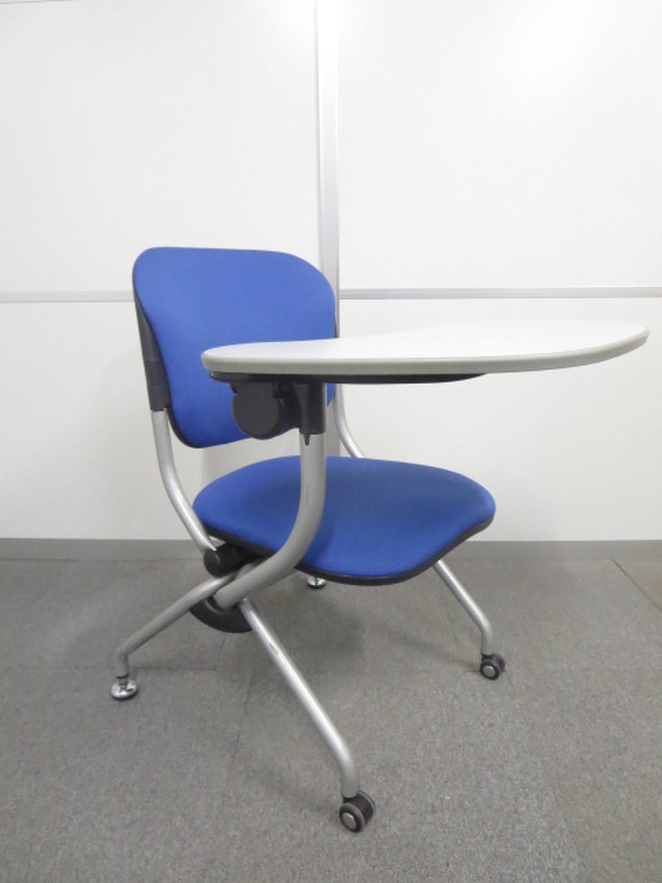 【テーブルを使わず空間を有効利用!】■メモ台付ネスティングチェア ブルー ■オカムラ製 トーションラインシリーズ!- 川崎店