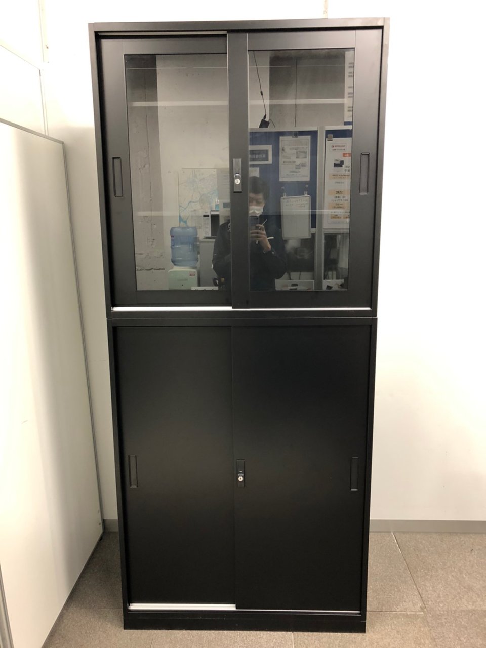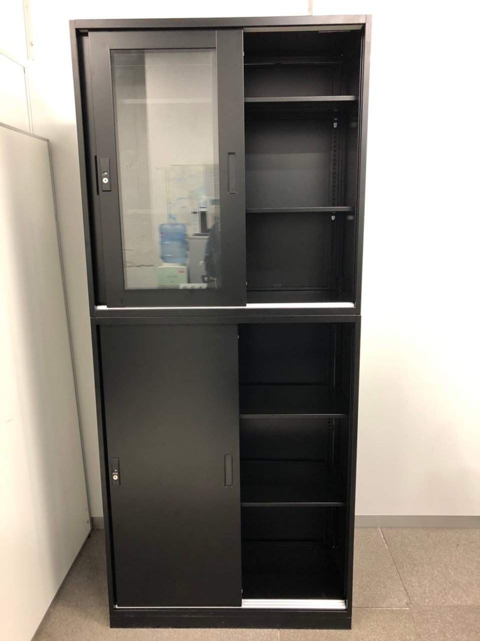 【ガラス+引き戸書庫】上質なブラック色でオフィスの雰囲気を一新!- 在庫数