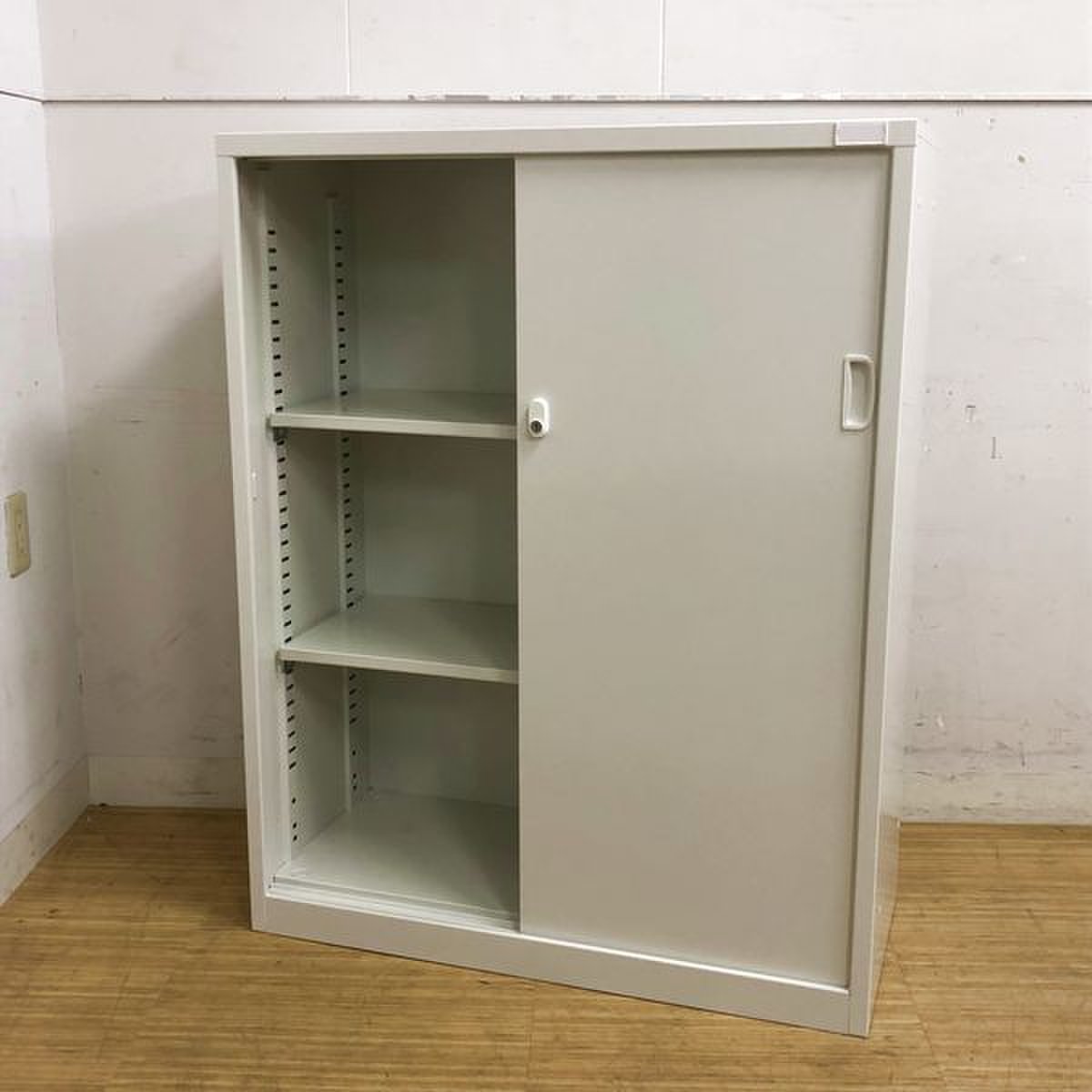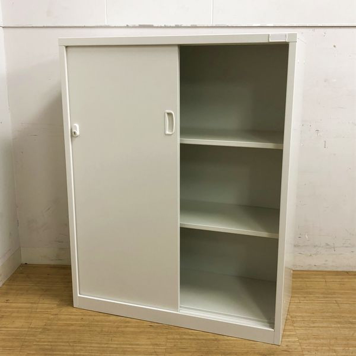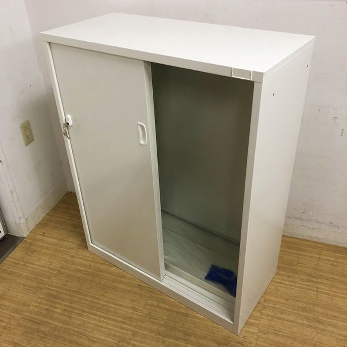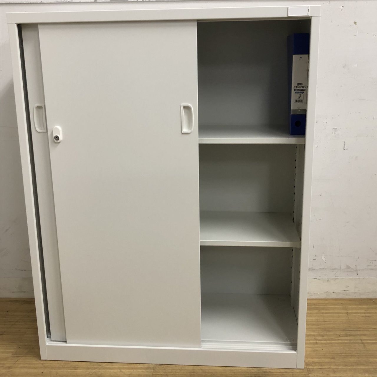 【新品】昨今オフィスに必須の鍵付き書庫|省スペース向け引き戸書庫【大量注文可能】【鍵2本付き】【ホワイト】【オフィス家具】- 名古屋千種店