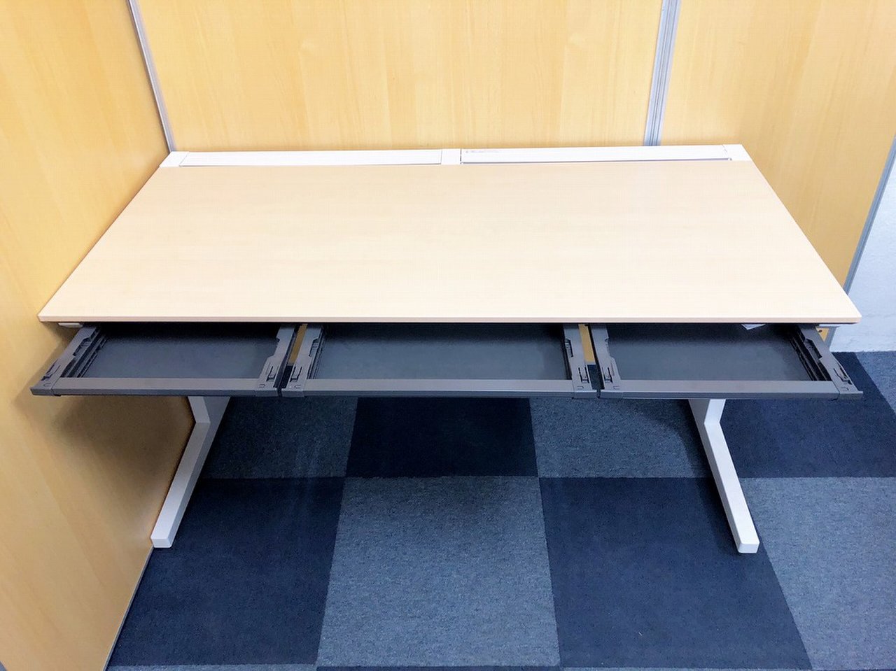 【ワークスペース広々!足元ゆったりの幅1400㎜タイプ!】■コクヨ(KOKUYO)製 isシリーズ(アイエス) 平机 幅1400㎜ 引き出し無し ■天板:木目ナチュラル 本体:ホワイト オフィスバスターズ東大阪店