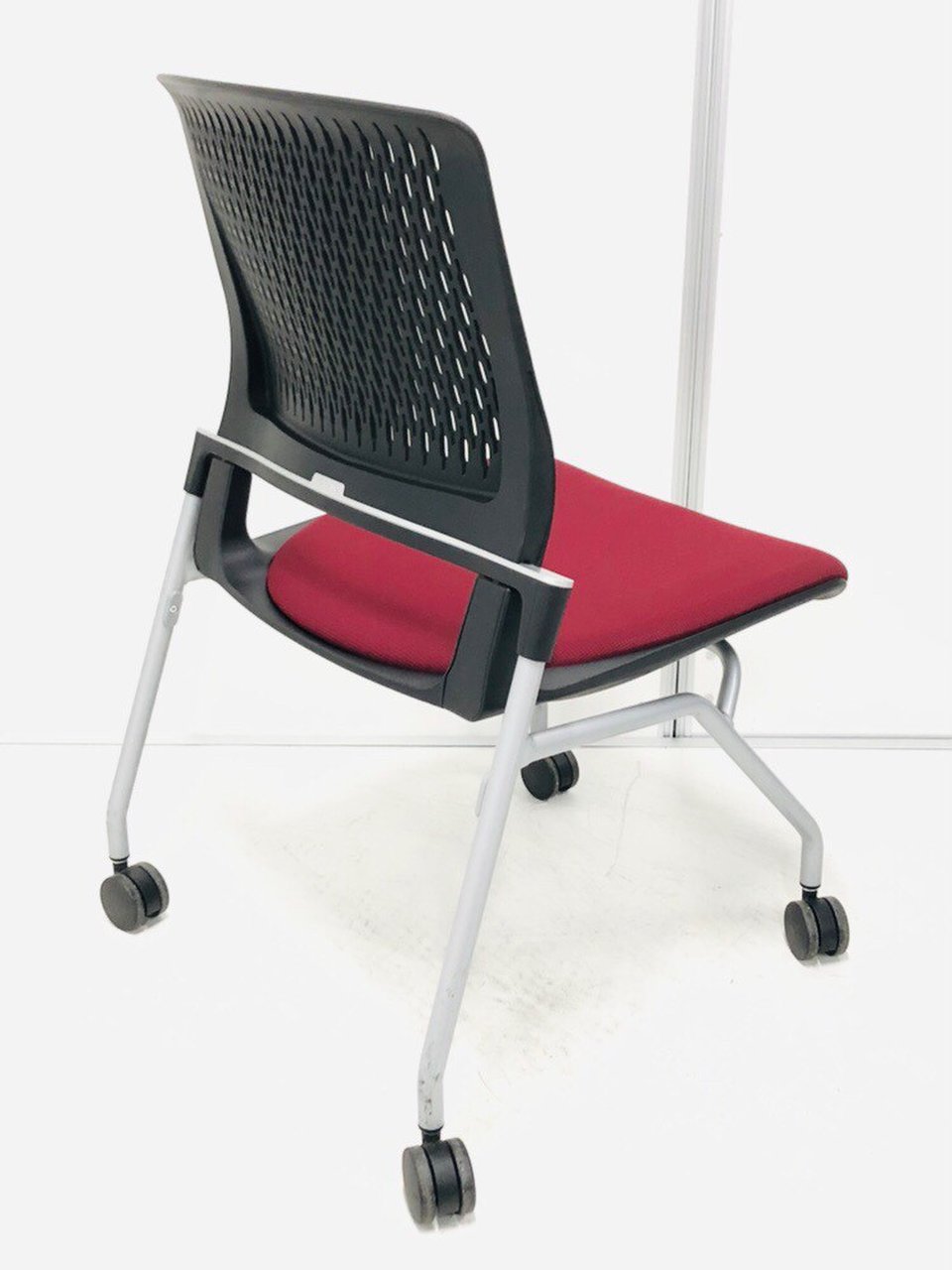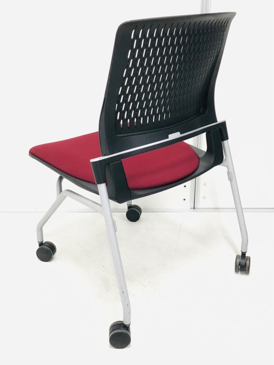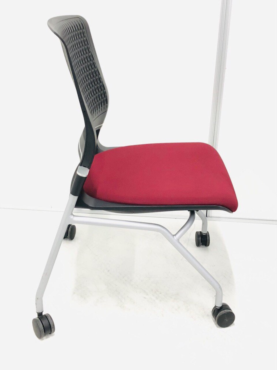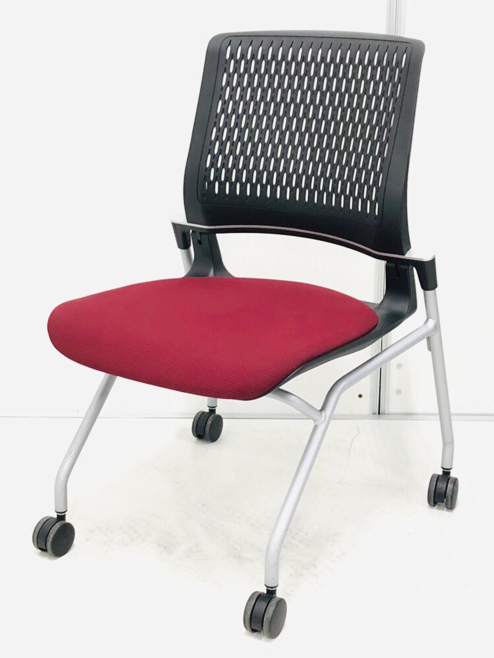 【肘無】【美品】ミーティングスペースにお勧め!コクヨ製/オルディナ/ワインレッド- 在庫数