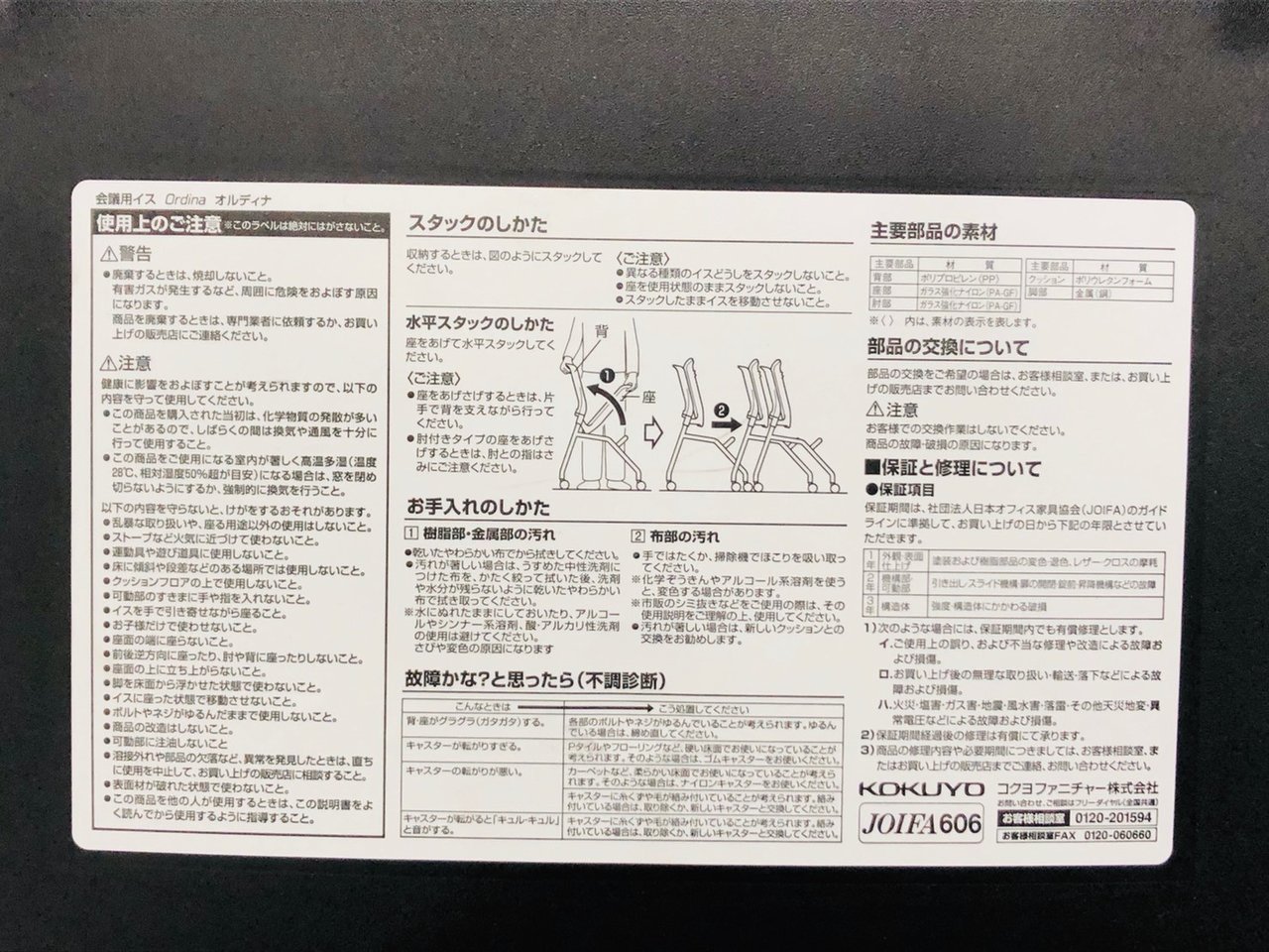 【中古】 オルディナ CKH-690E6 コクヨ/KOKUYO スタッキングチェア 282986