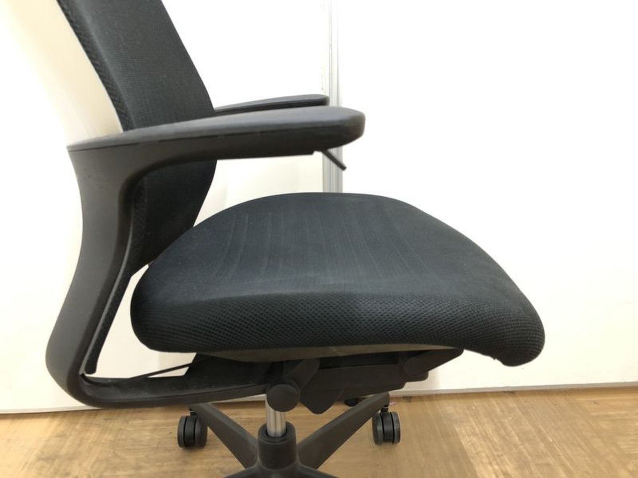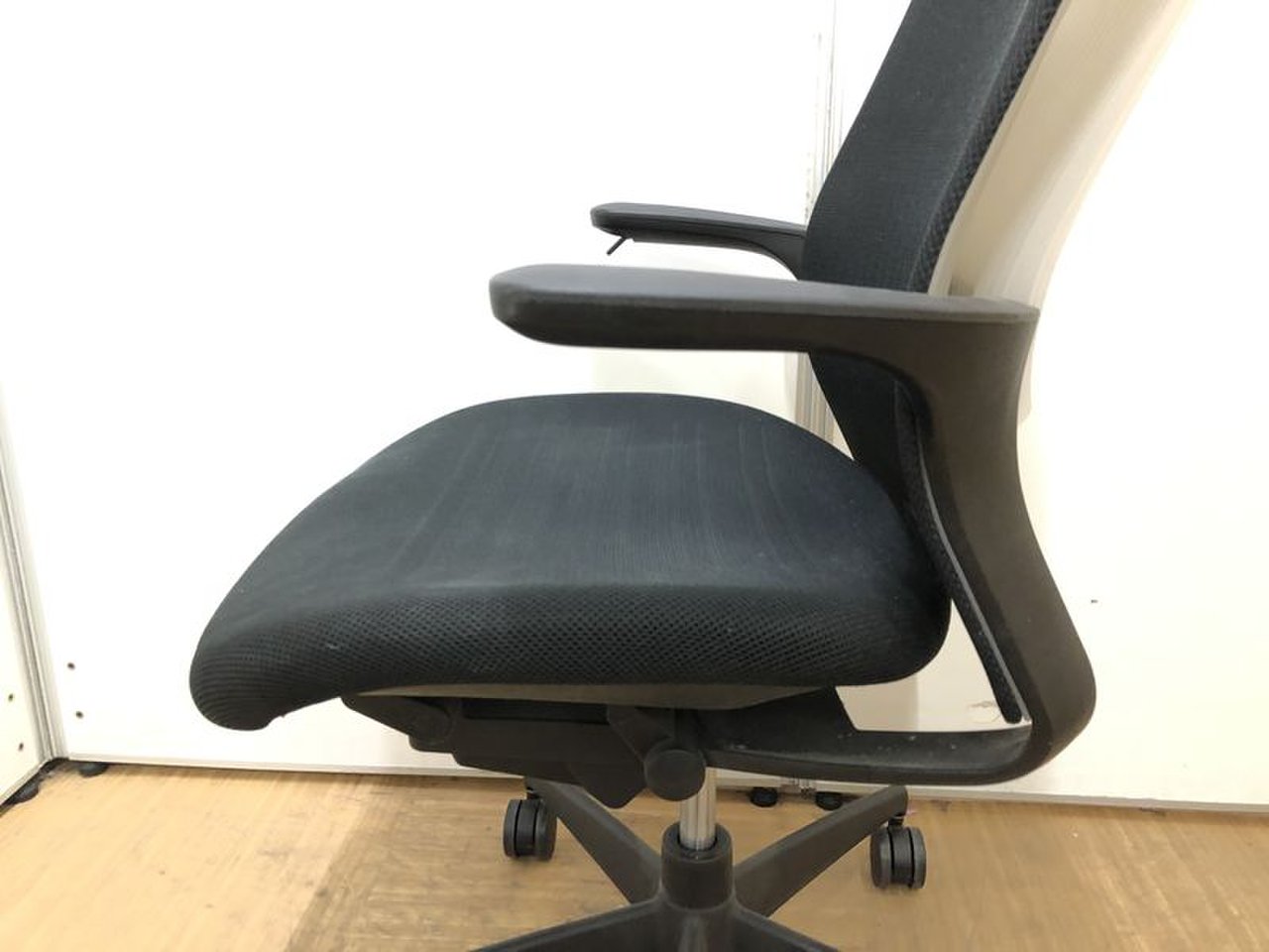 【在庫入替品】【テレワーク(在宅ワーク・リモートワーク)にオススメ】通気性の高い肘付きオフィスチェア【肘掛けのレバーで高さ調整可能】- 名古屋本店