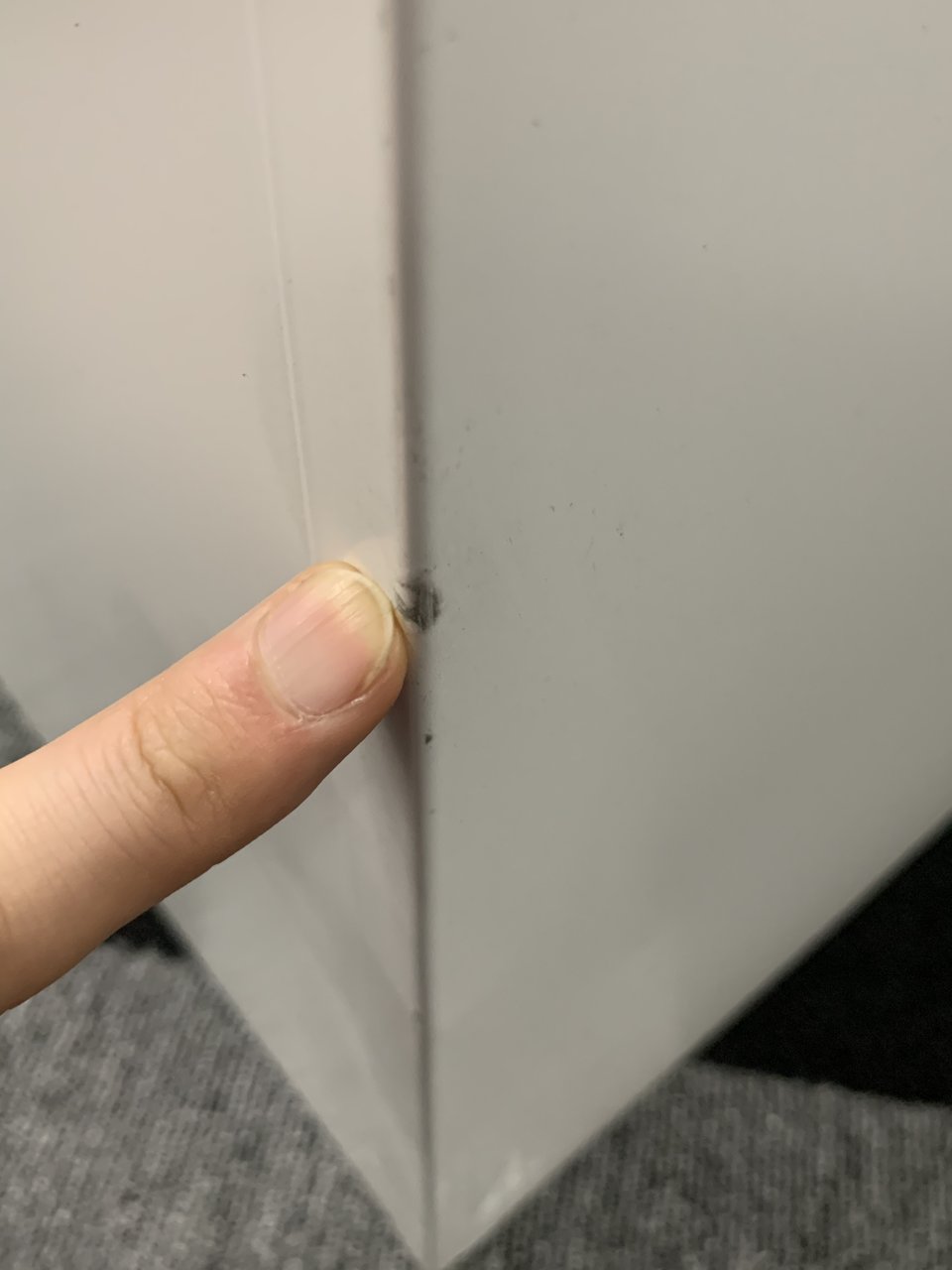 - 目立つ箇所あり傷・凹みが多数、深い傷・凹みが一部ある。(例、天板、正面、背部、サイド部分にある。)