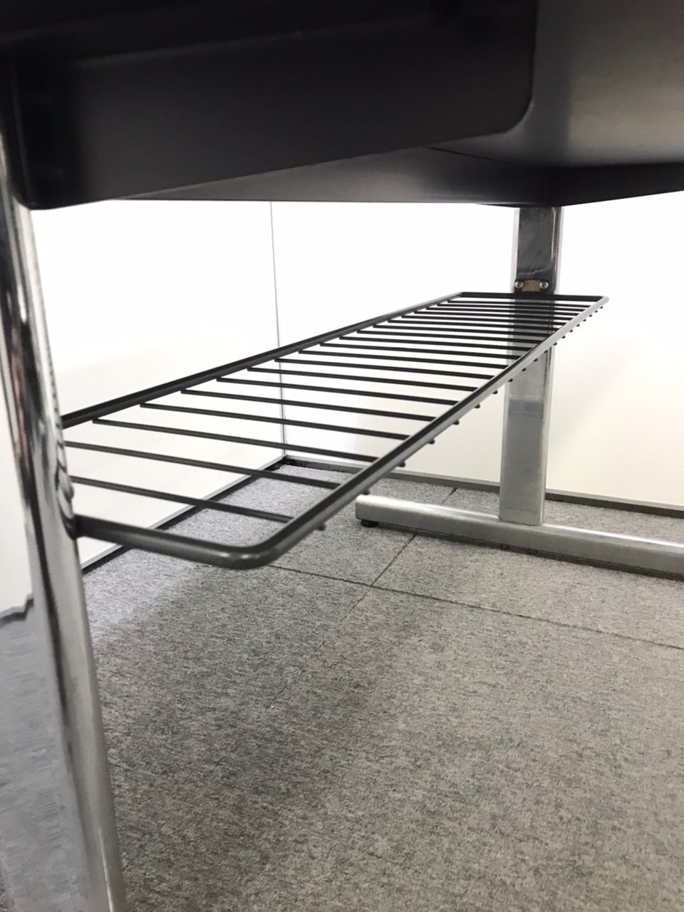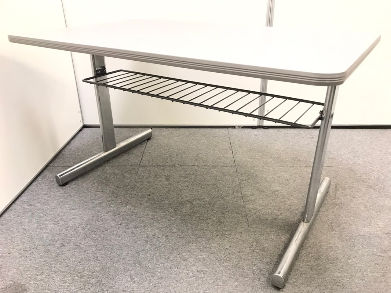 - 一部不具合あり天板歪み、アジャスター無し、キャスター使用不可ようなそのテーブルの本来の効用を果たすための機能以外の一部が使用不可な状態。(例、キャスターロッ ク機能使用不可、棚板無し等がある。)