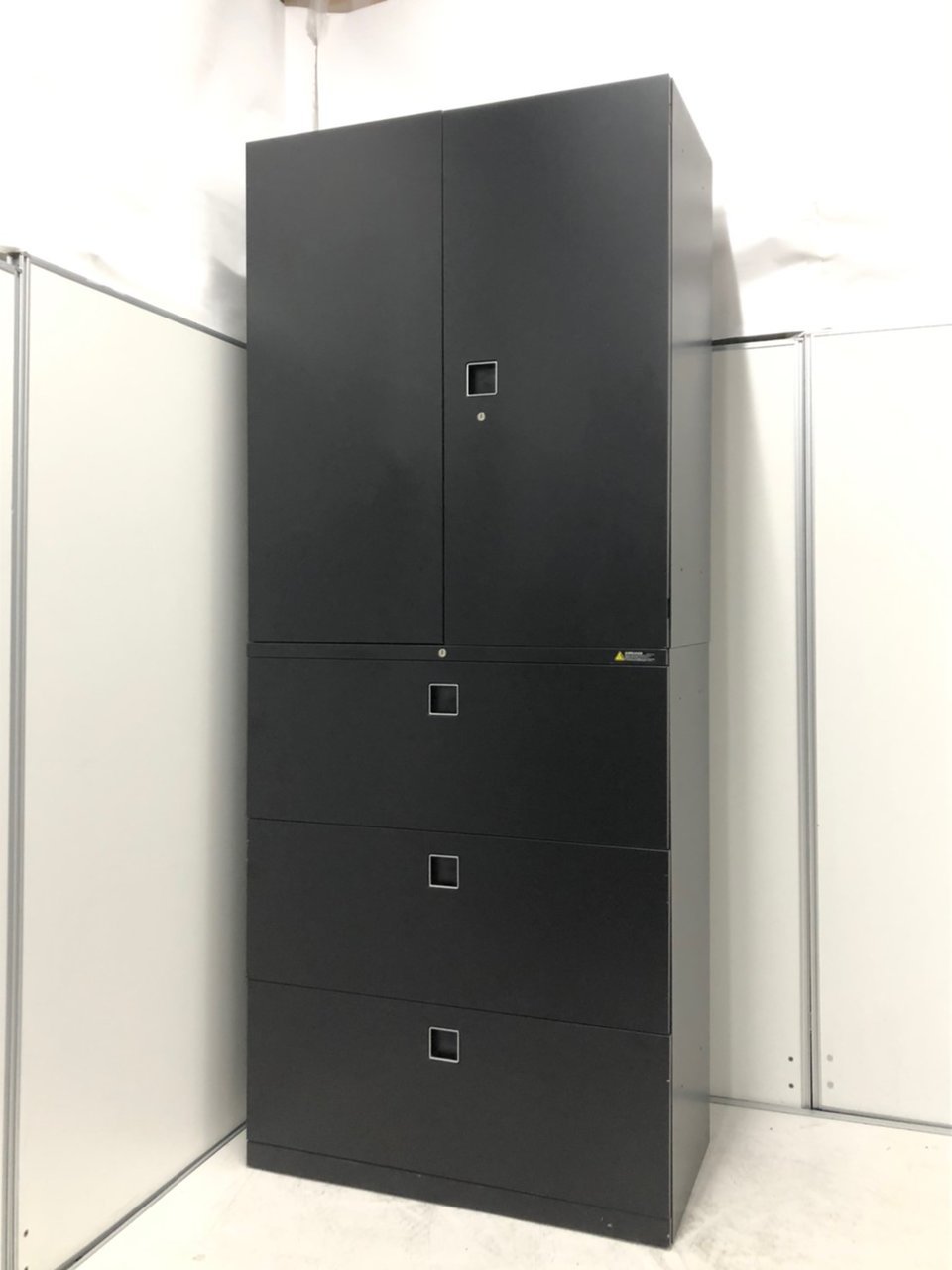 【鍵付】【希少目玉商品】 ブラックボディが最高にカッコイイ! 両開き+3段ラテラルの書庫セットは使いやすい為、1番人気です!- 足立・葛飾店