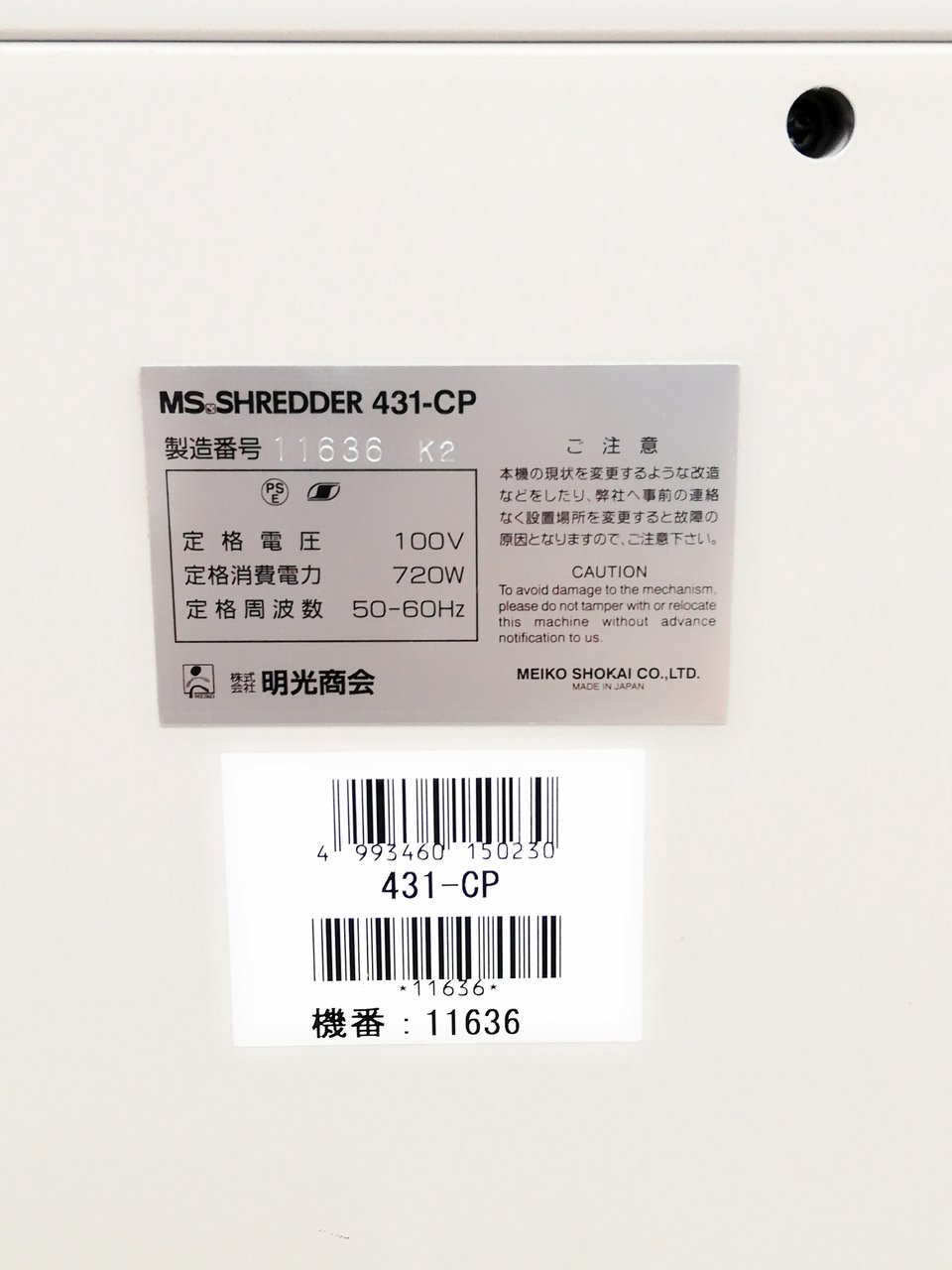 【中古】 MSシリーズ MS-431CP 明光商会 シュレッダー 283091