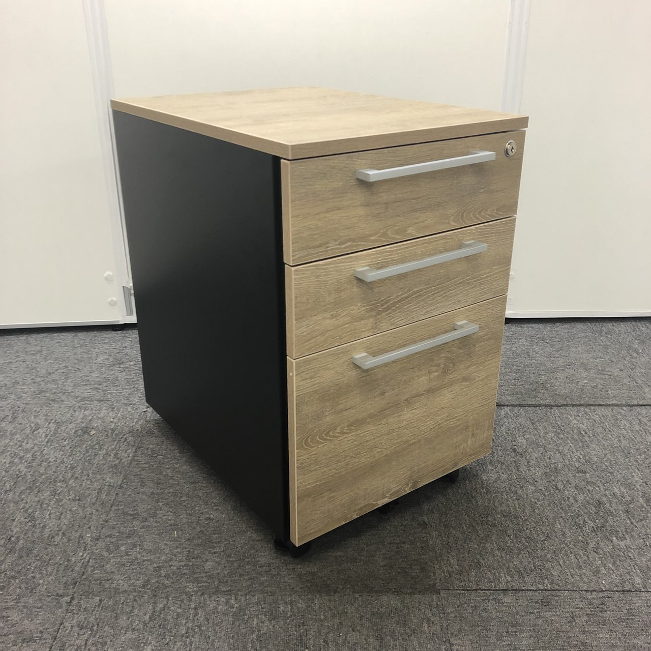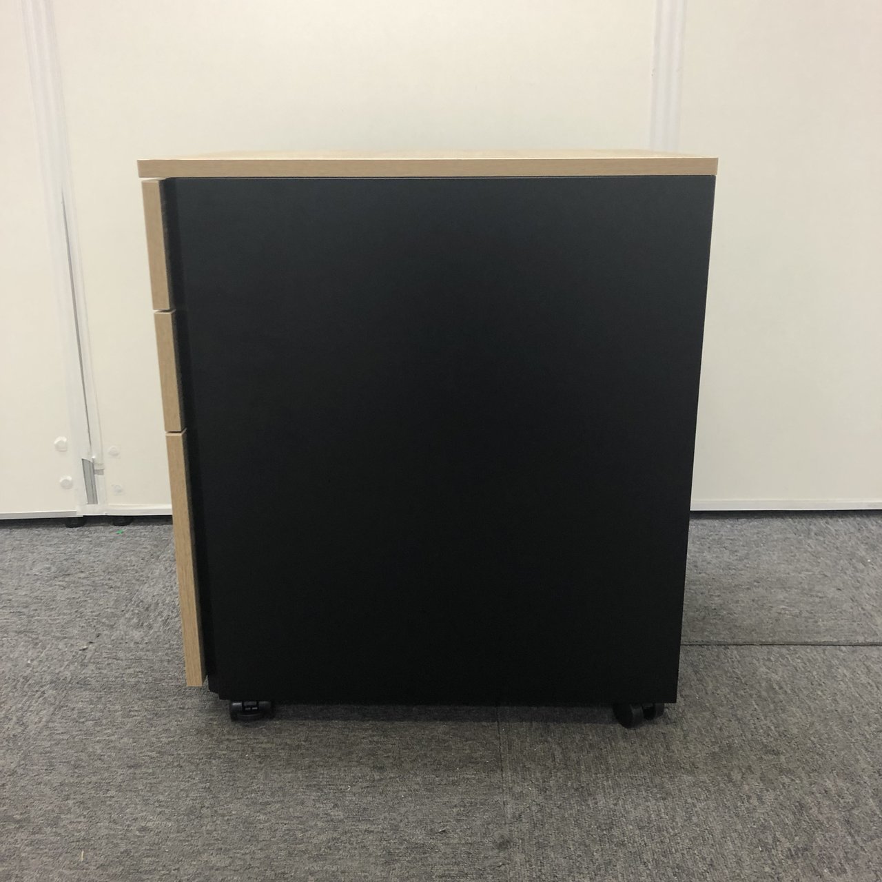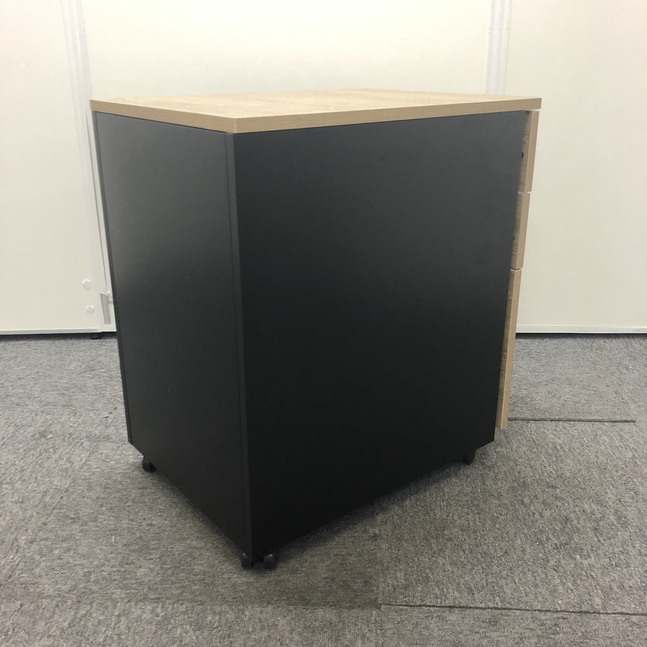 【お洒落家具入荷!】ブラックフレームに木目調がお洒落!3段ワゴン! オフィス 家具【大量注文可能】- 大阪・堺店