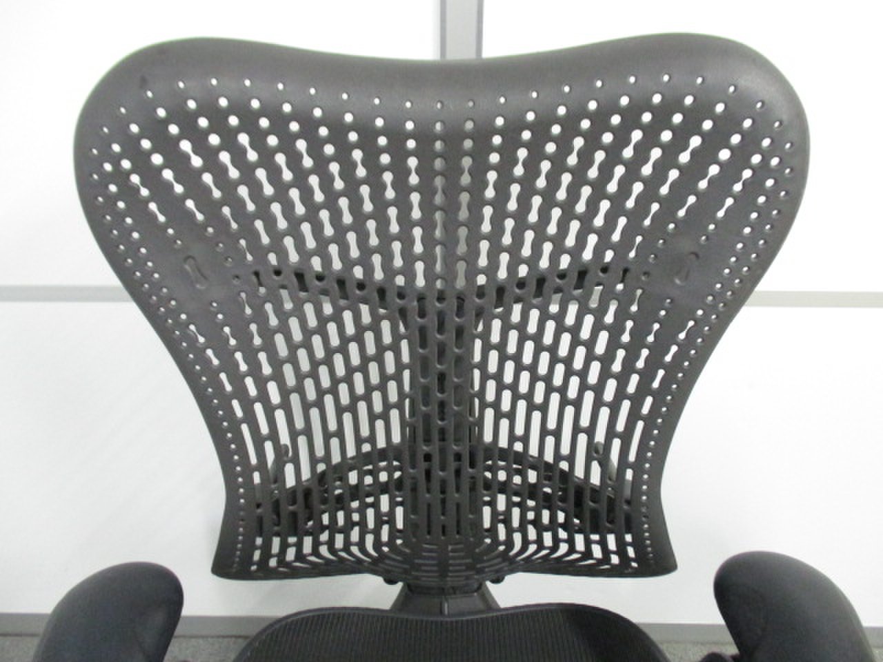 ポリマー素材の背もたれのトライフレックス。通気性の良い567個の穴があらゆる体型や動きにフィットします。