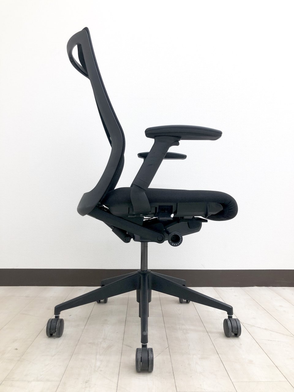 また、個人的にオススメなのは『フルアジャスタブル肘』というアーム部分が斜め前に伸びていくタイプの肘置きを搭載したモデルです。高さを上げれば上げるほどパッドが前方に迫り出していくので、デスクワークの際にちょうど肘を置きたい場所に肘置きがきます。これがとても快適なので、ぜひ一度お試しいただきたいです!*エルフィチェアの肘パーツはフルアジャスタブル肘の他に、固定肘、アジャスタブル肘などがあります。