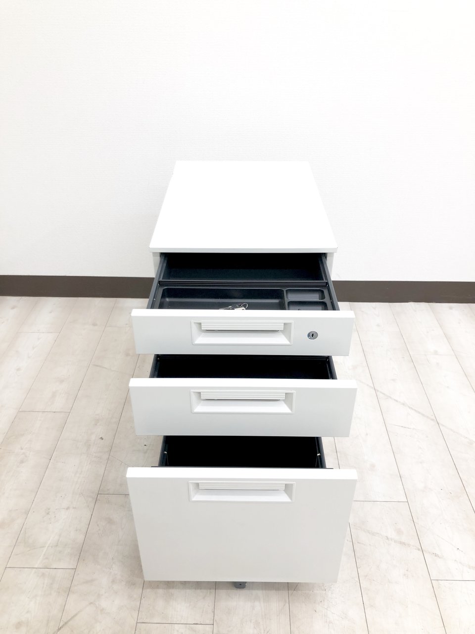 シンプルホワイトワゴン入荷! プラス 3段ワゴン ホワイト 鍵付き【RP】- 埼玉本店